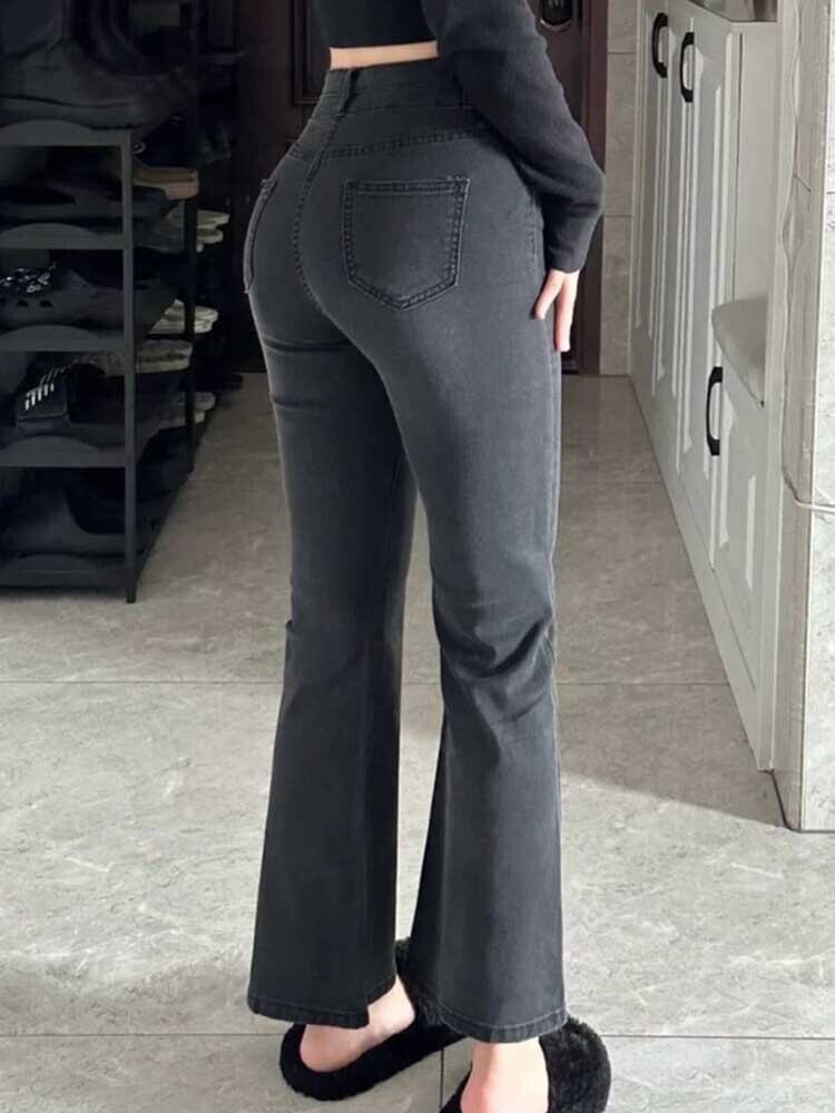 ストレッチの効いたデニムにブーツカットのシルエットで脚長効果抜群◎ハイウエストでお腹周りもしっかりホールドしてくれますよ♪ フロントには切り替えラインが入り縦長のスッキリ見えが強調されて美シルエットを演出☆洗いをかけて色落ちしたブラックが春夏の気分にぴったりですね♪