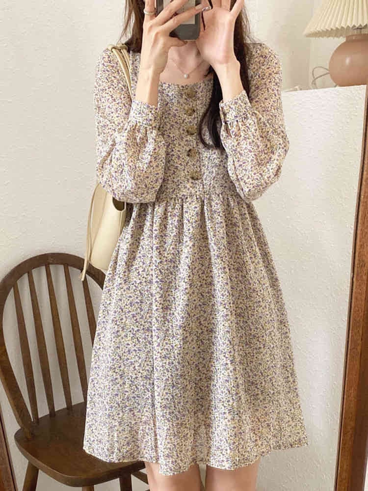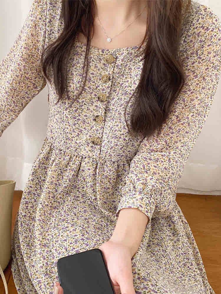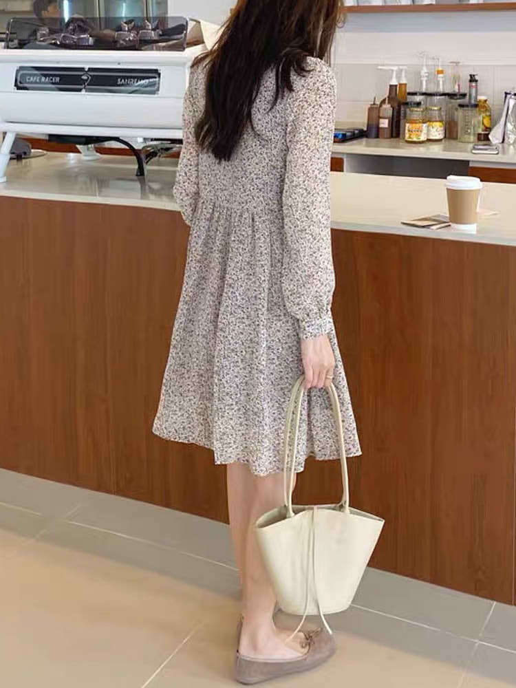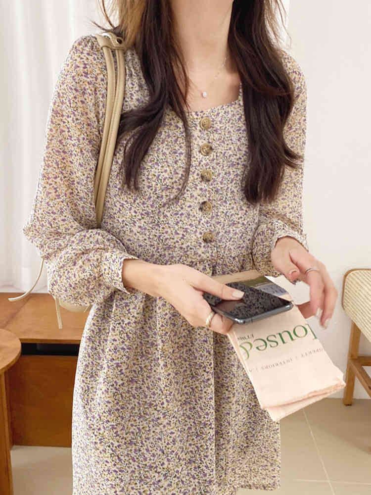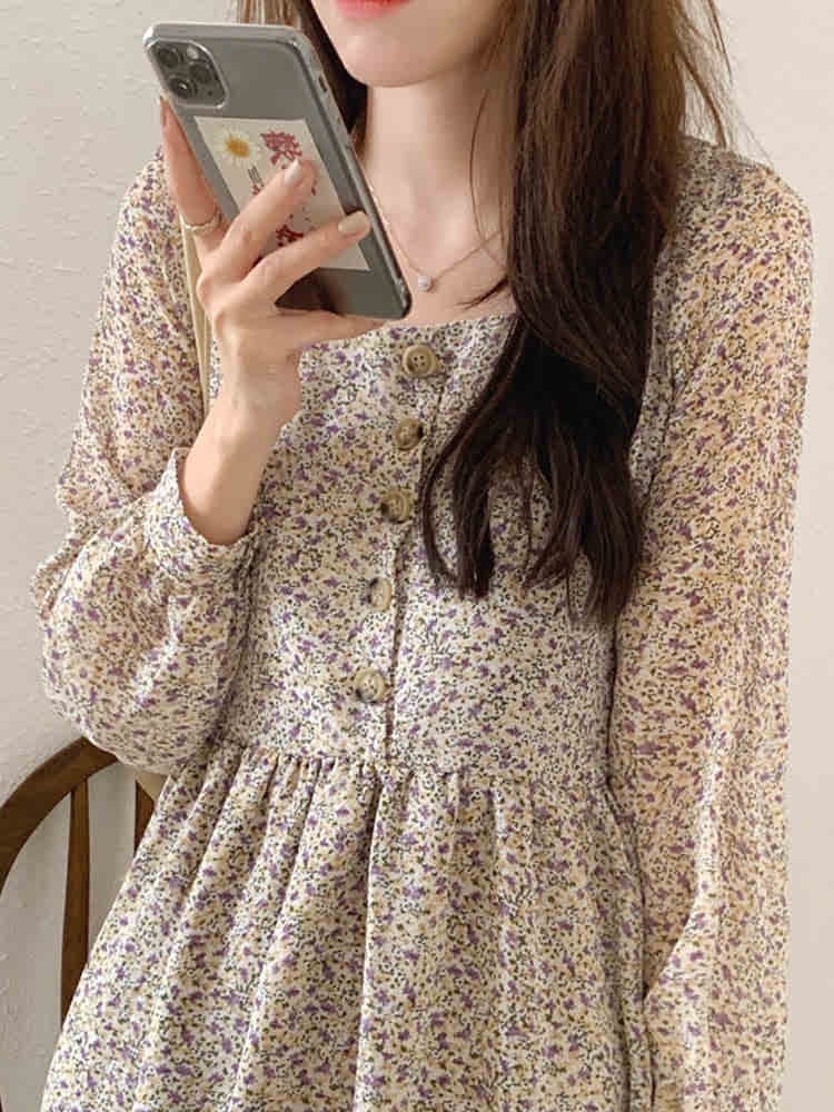 ナチュラルな愛らしさで男子ウケ抜群 小花柄ミニワンピース フェミニンコーデ 大人かわいい 春 秋 大きいサイズ 韓国 CH8401