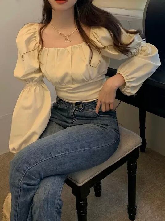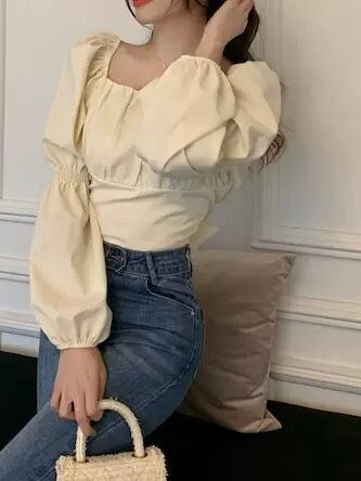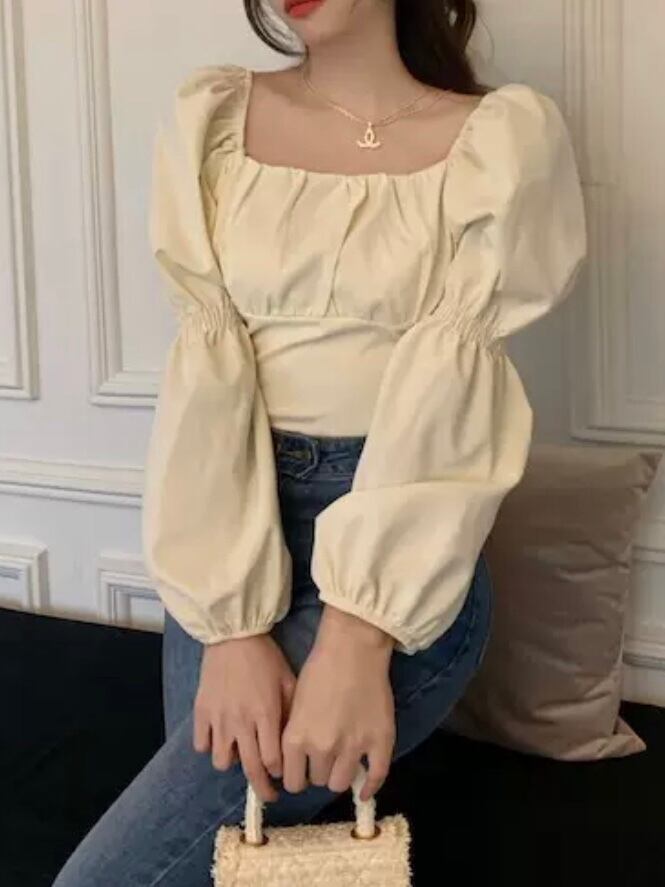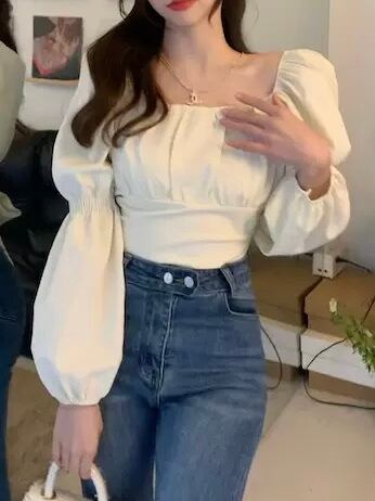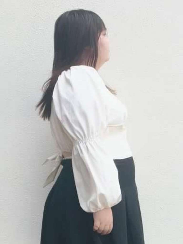 ぽわんとしたシャーリングの施されたパフスリーブ袖が華奢見せを叶えてくれ、スクエアネックが鎖骨、首筋やデコルテ部分をスッキリ見せてくれます◎