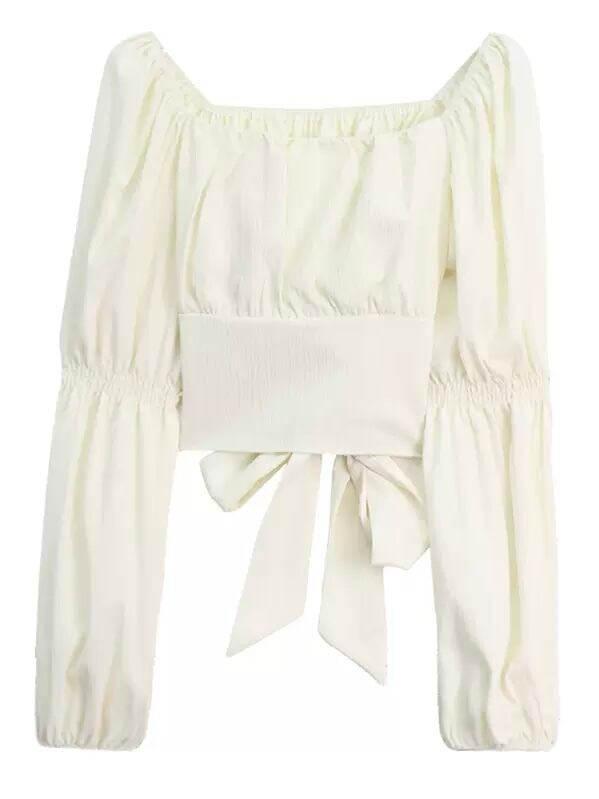 後ろ姿も色っぽ可愛い クロップド丈 バックリボントップス 長袖 ウエストマーク リボン きれいめ 可愛い デート 大きいサイズ 韓国 CH8726