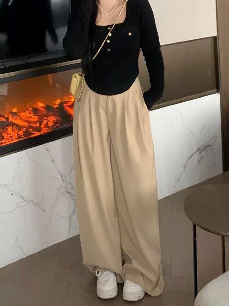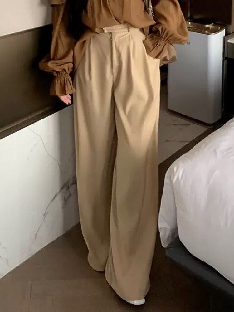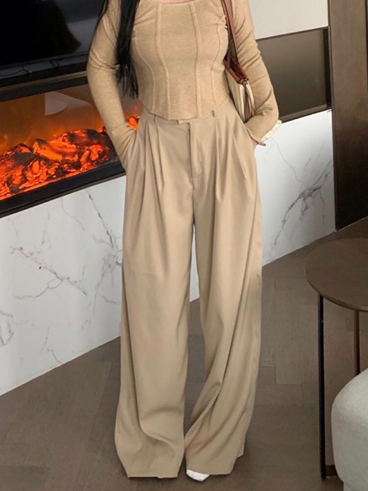 ラフなシルエットがお洒落見え ハイウエストツータックワイドパンツ ロング丈 体型カバー シンプル オフィス デイリー カジュアル 大きいサイズ 韓国 CH8743