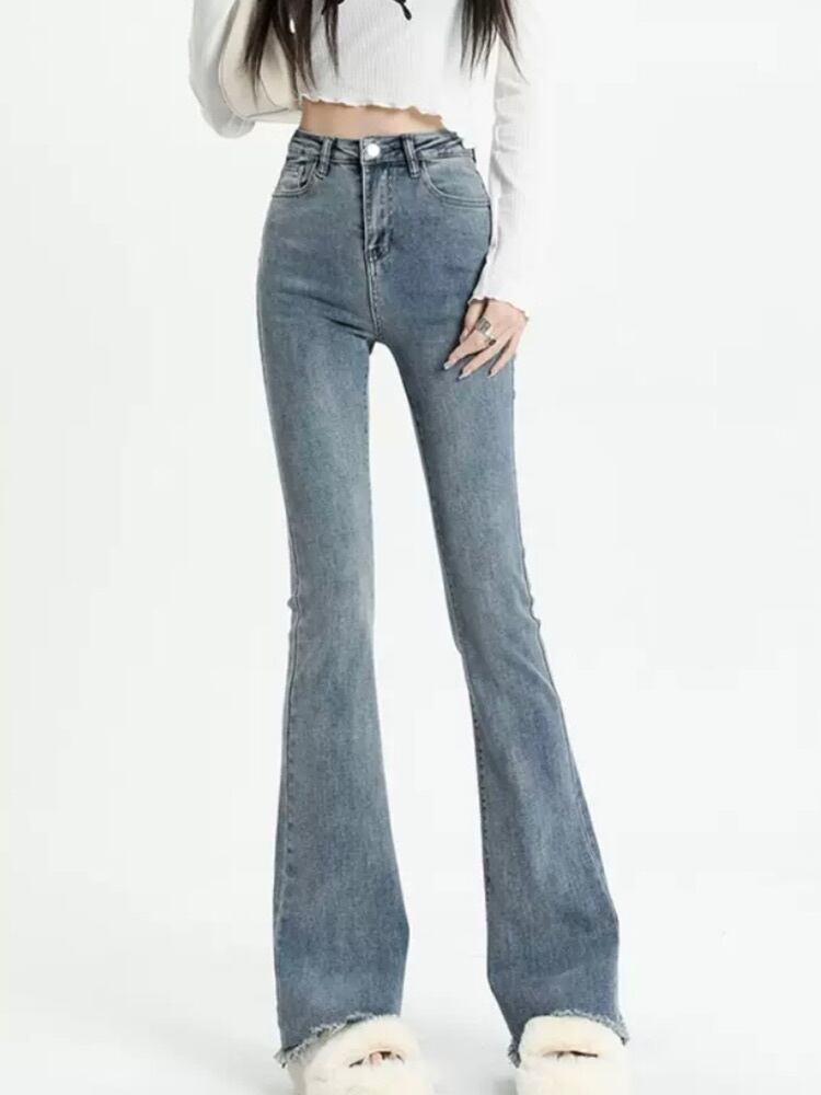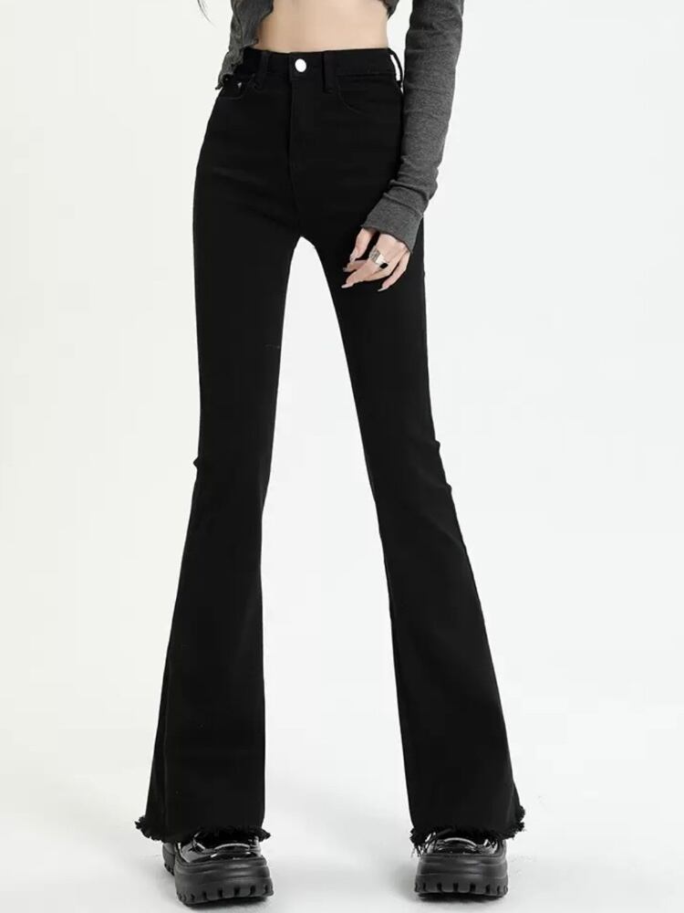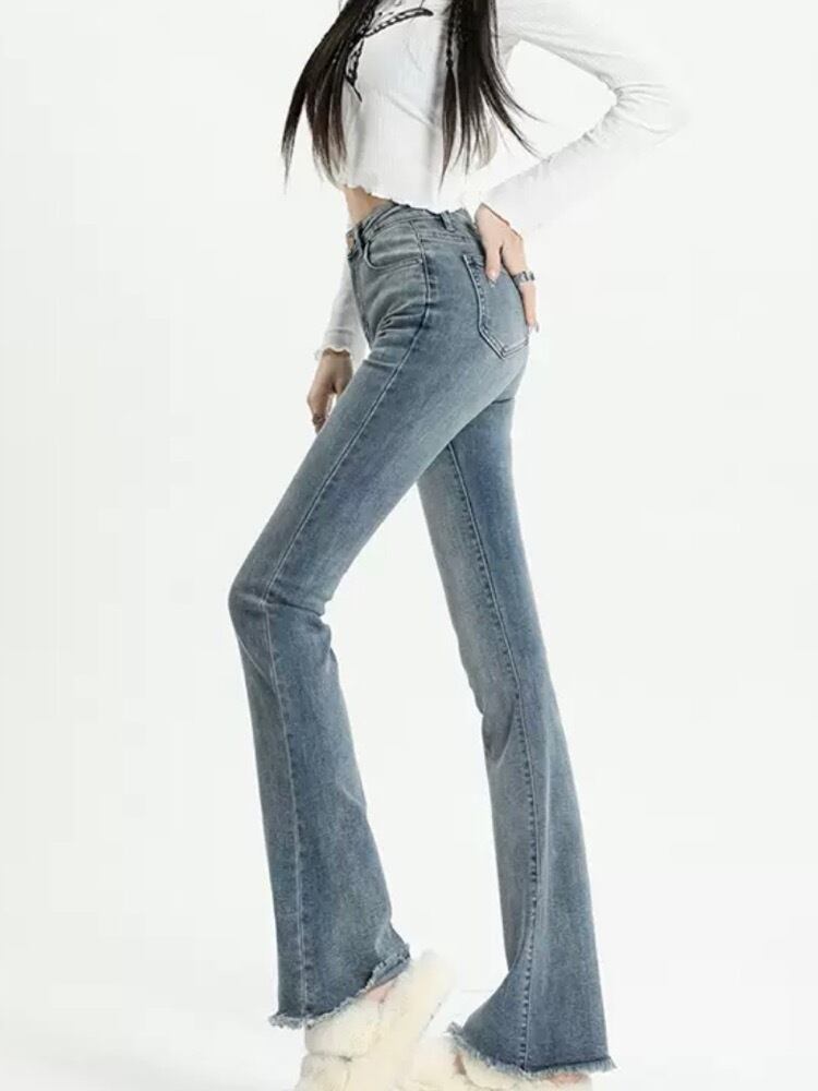 ヴィンテージ感漂う美脚見えパンツ 裾フリンジフレアデニムパンツ ブーツカットフリンジ ストレッチ 美脚 着痩せ おしゃれ き!いめ カジュアル 大きいサイズ 韓国 CH8748