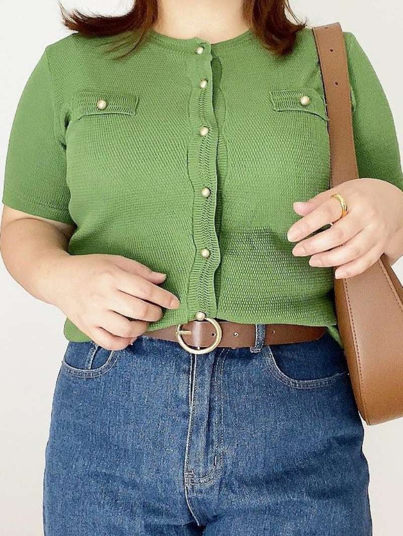 さらっとしたサマーニット生地で着心地良く、華奢なボタンが上品さとトレンド感をプラス♡