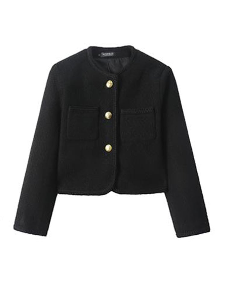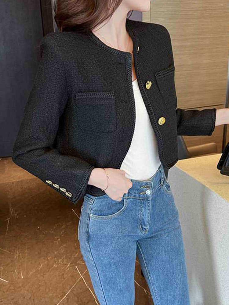 コーデをきりっと引き締めてくれる ゴールドボタンノーカラージャケット フェミニンコーデ きれいめ ベーシック ポケット 大きいサイズ 韓国 CH8797