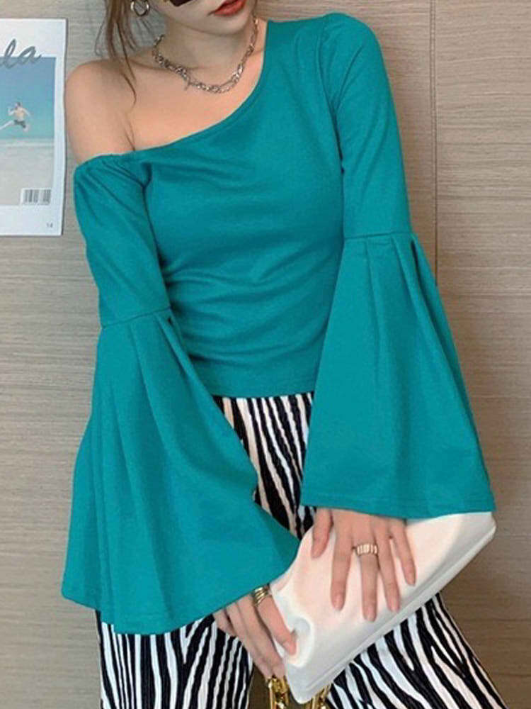 【即納】1点限定 ワンショルダーベルスリーブカットソー セクシーコーデ かっこいい 大人 人気 トレンド 大きいサイズ 韓国 CH8408