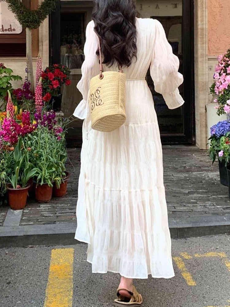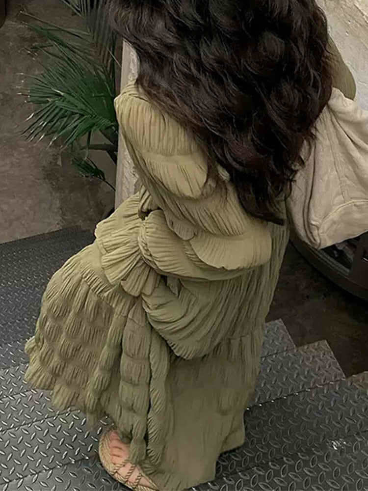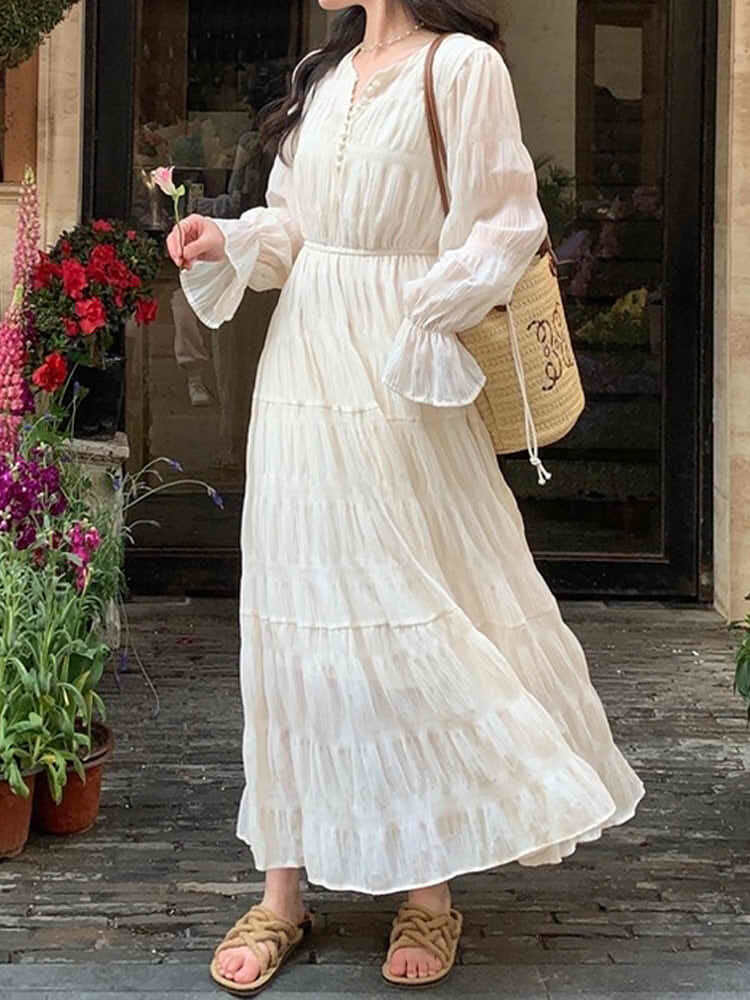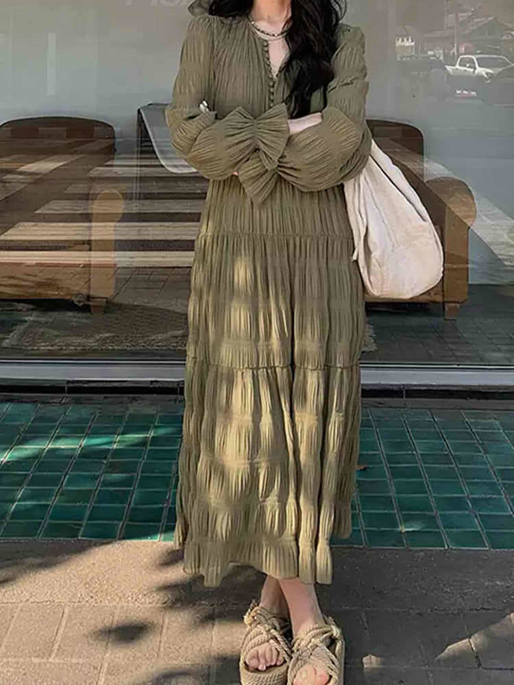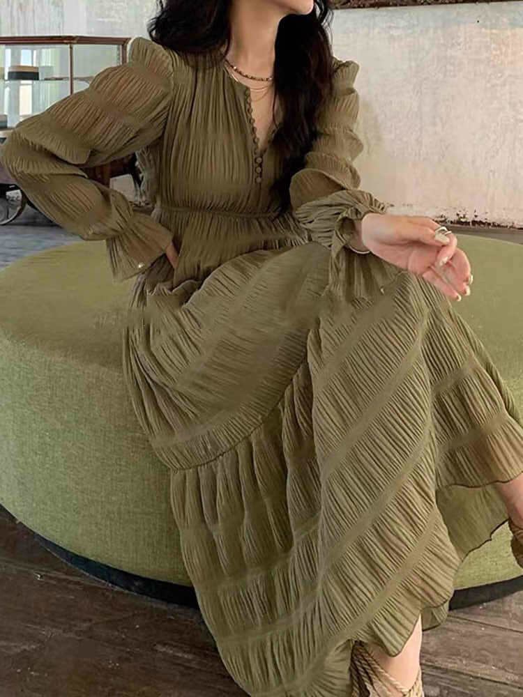 ナチュラルフェミニンスタイルのマストアイテム シワ加工シフォンロングワンピース カジュアルコーデ かわいい お出かけ 人気 大きいサイズ 韓国 CH8807
