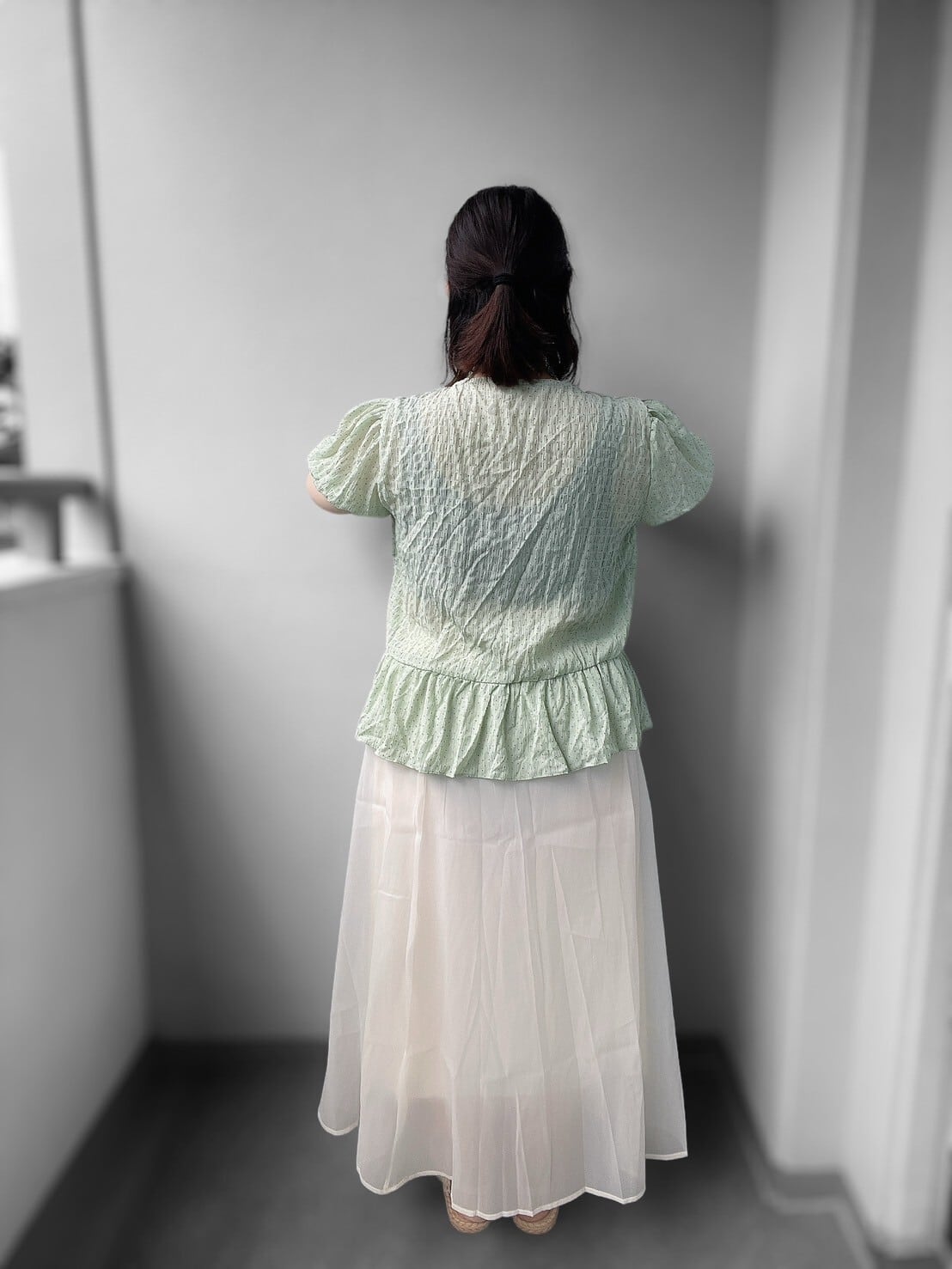 少しクシュっとしたシフォン生地×控えめなピンドット柄で上品に高見え♡