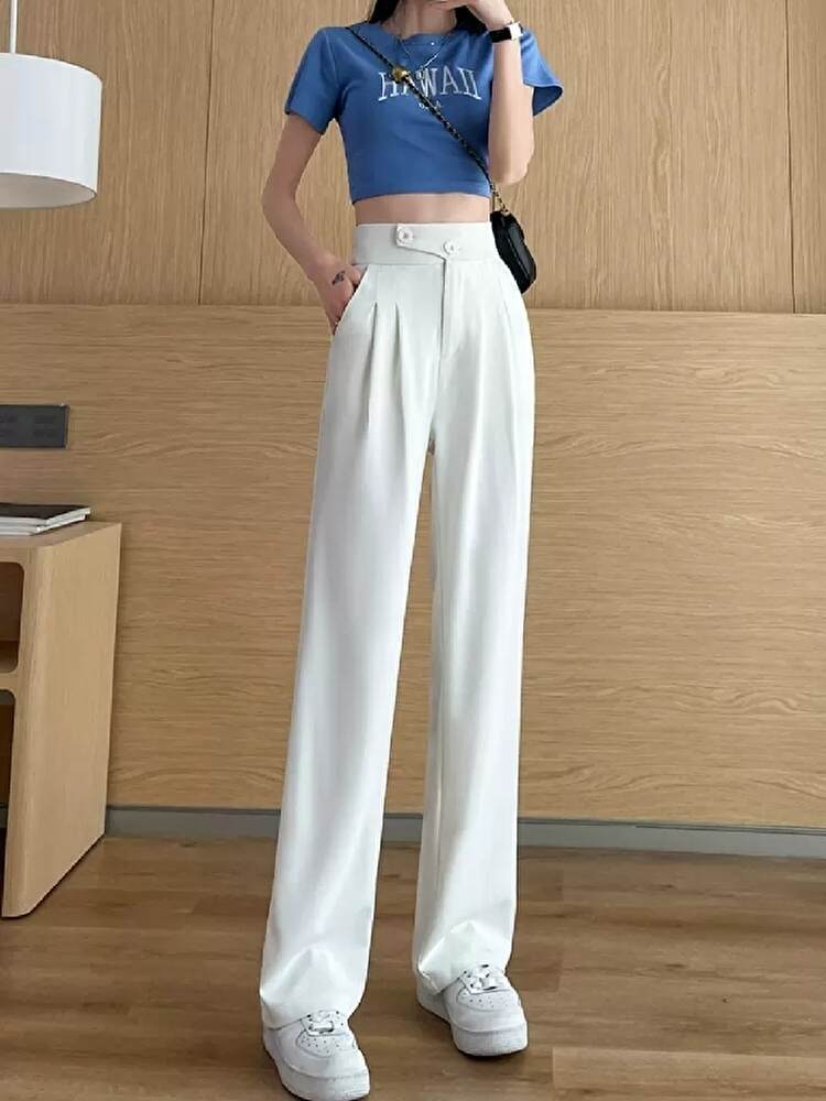 ハイウエストでスタイルアップ ワイドパンツ ドレープ ロング 大きいサイズ 韓国 CH8909