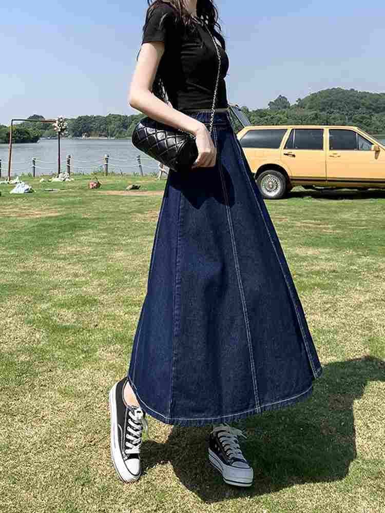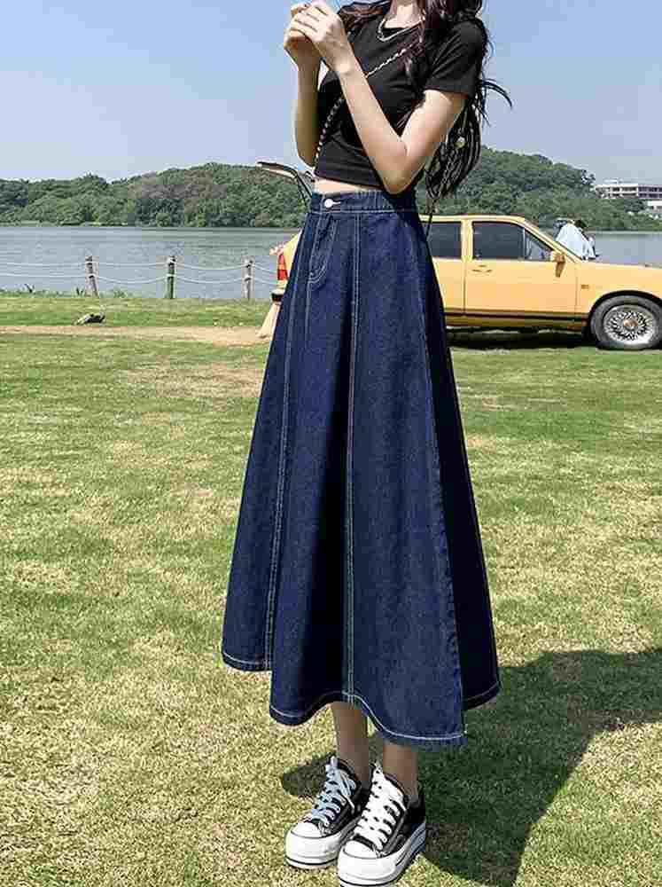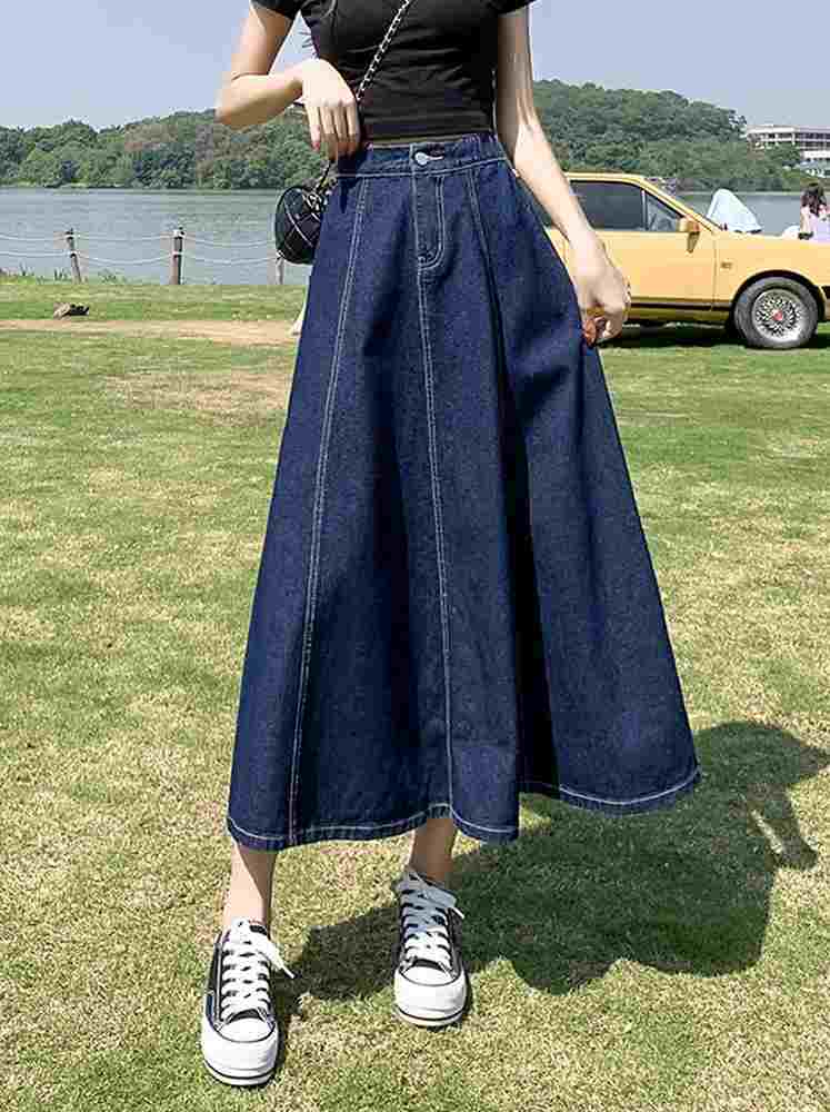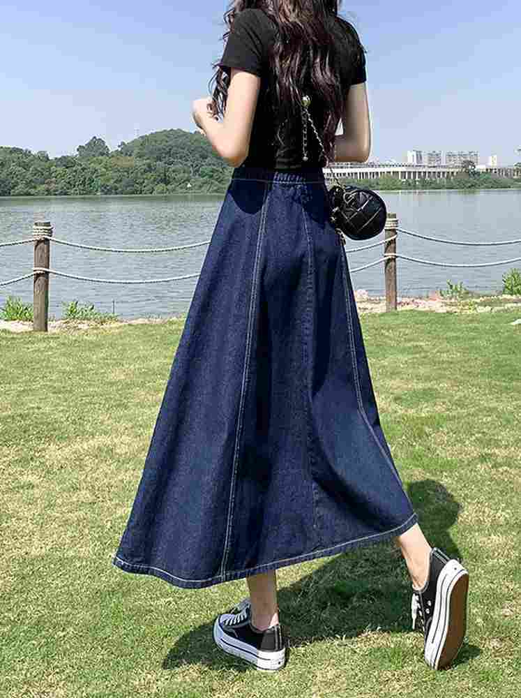 デニム ロングスカート カジュアル シンプル 大きいサイズ 韓国 CH8891