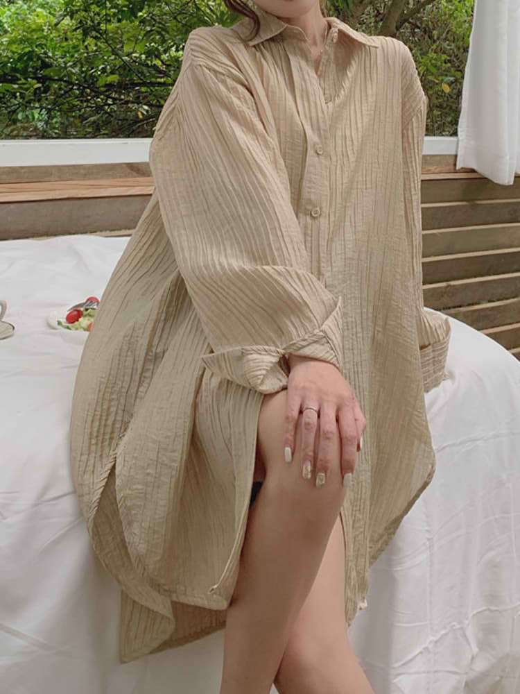 今っぽビッグシルエットで華奢見え ワッシャーシフォンシャツカーデ カジュアルコーデ かわいい 夏 シースルー 大きいサイズ 韓国 CH8907
