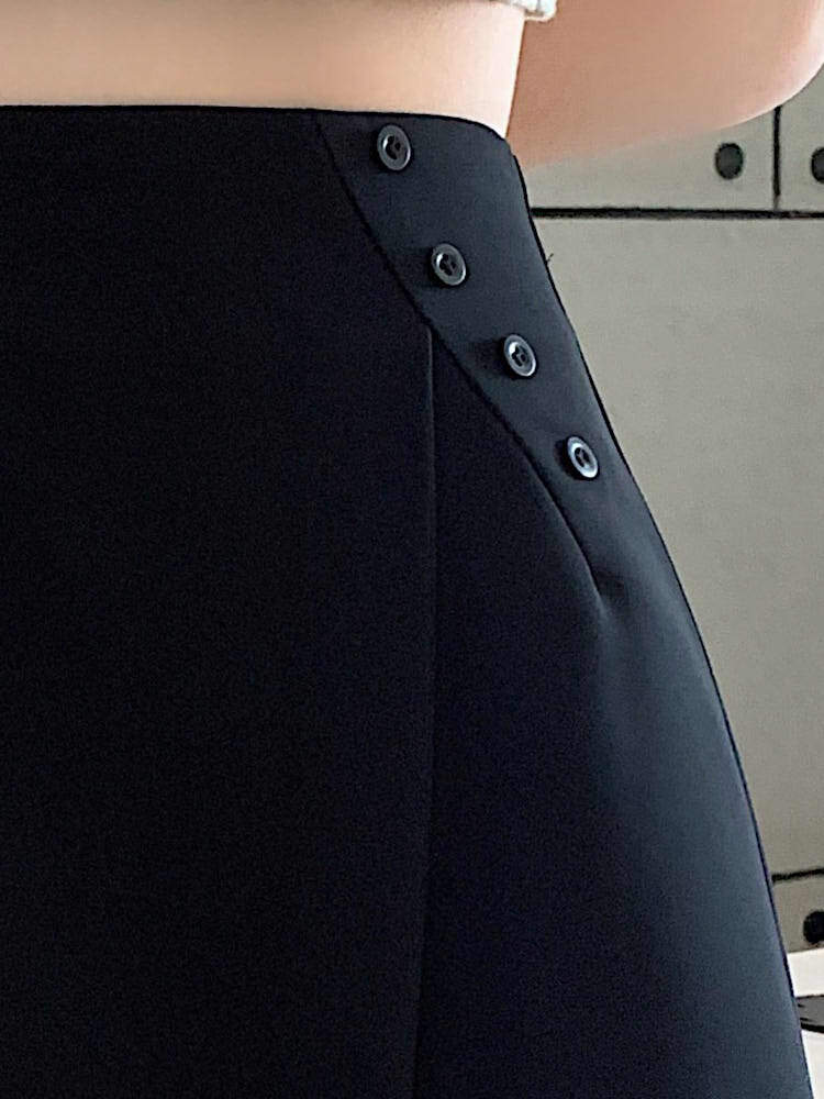 ウエストの小さい4連ボタンやさらりとした軽い生地で高見えするアイテム!