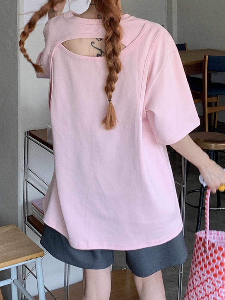 後ろ姿で差が付くおしゃれ上級者に バックカットアウトTシャツ カジュアルコーデ かわいい クール ストリート 大きいサイズ 韓国 CH8994