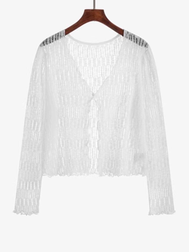 上品な透け感 シアーリブ編みメロウカーディガン 大人かわいい シンプル Vネック 夏 カラバリ豊富 大きいサイズ 韓国 CH9011