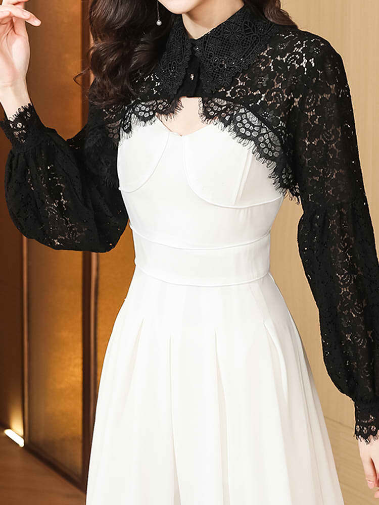 ゴージャスに高見え 総レース襟付きボレロ フォーマルコーデ きれいめ 上品 重ね着 プチプラ 大きいサイズ 韓国 CH9021