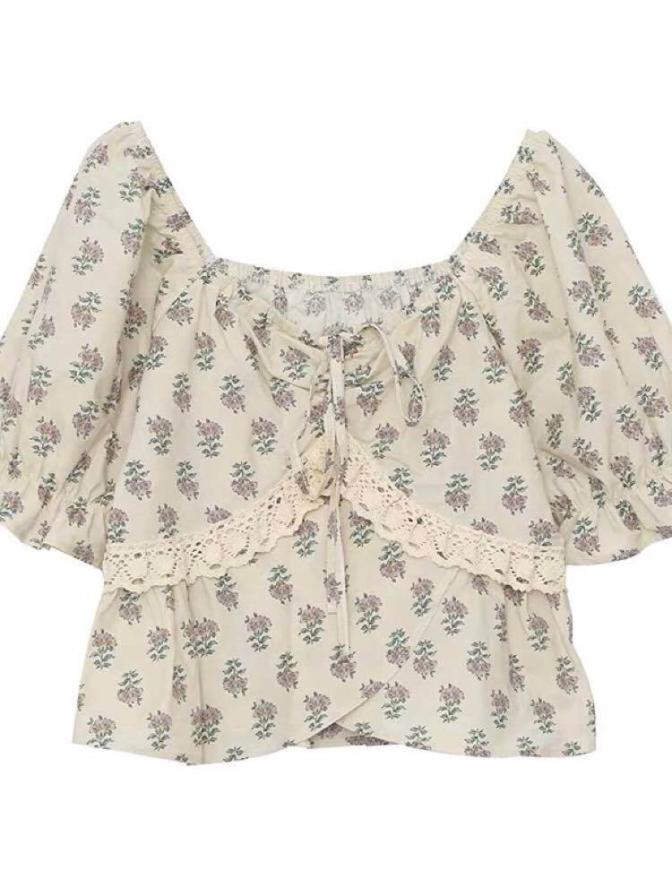 花柄とコットンレースフリルが可愛さ満点♡花柄のペプラムブラウスです。