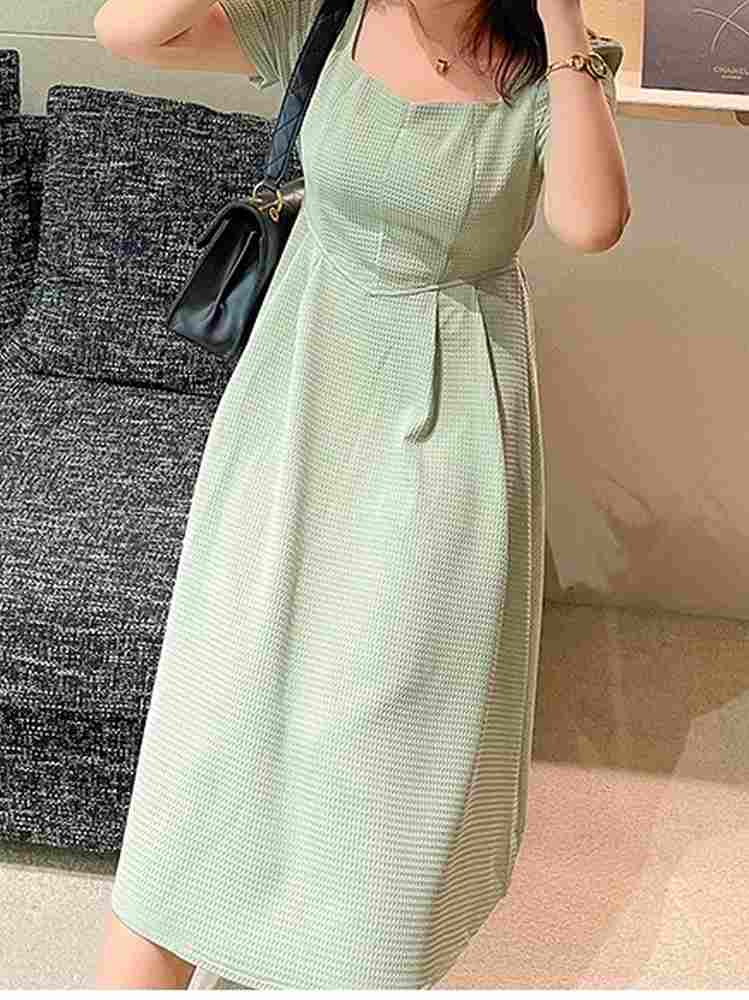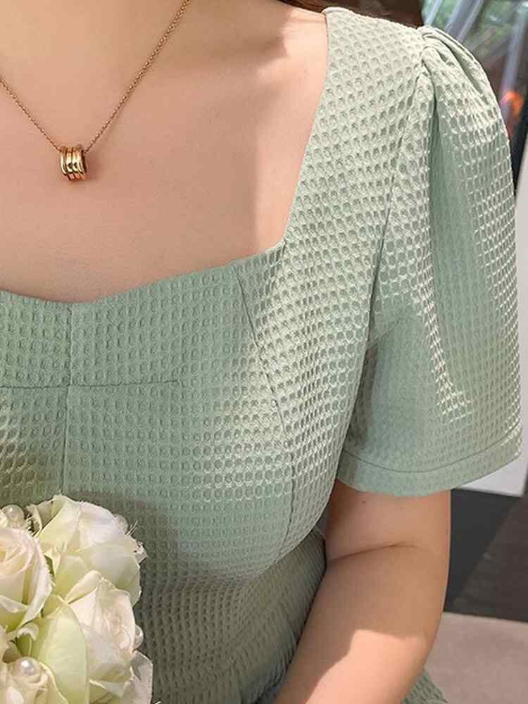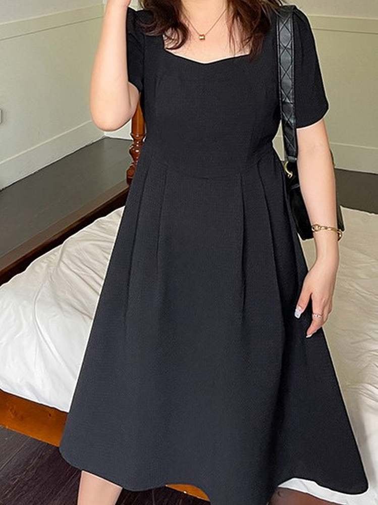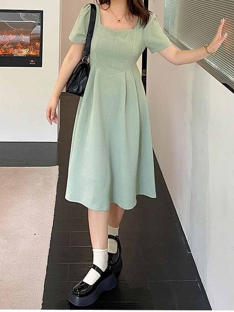 デコルテラインがすっきり スクエアネックワンピース 無地 可愛い シンプル 大きいサイズ 韓国 CH9090