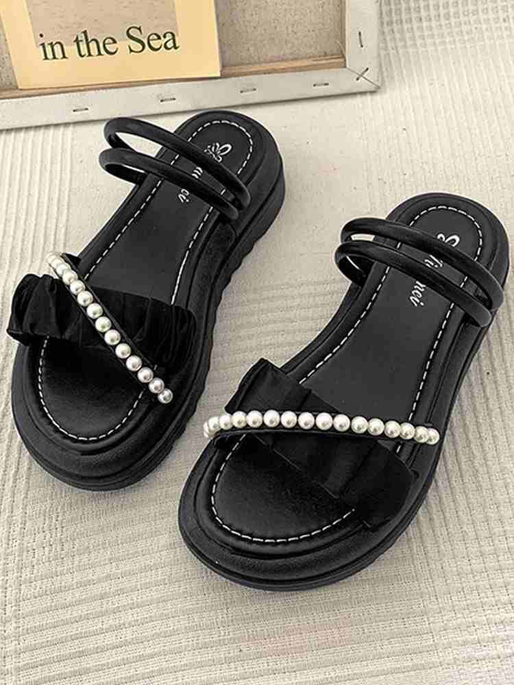 パールデザインで甘さをプラス 厚底ストラップサンダル カジュアル エレガント リゾート 人気 大きいサイズ 韓国 CH9157