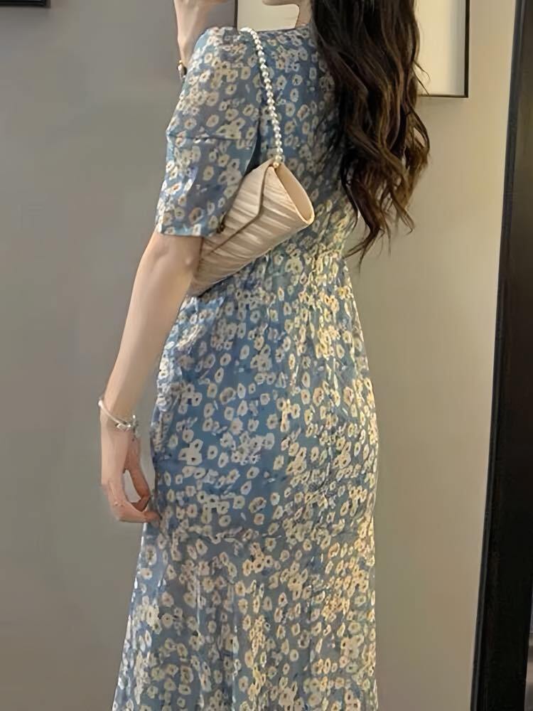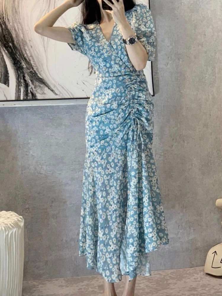 清楚な色っぽワンピで女度UP 花柄スリットロングワンピース 花柄 半袖 ロング丈 大人可愛い 清楚 きれいめ お呼ばれ リゾート 大きいサイズ 韓国 CH9200