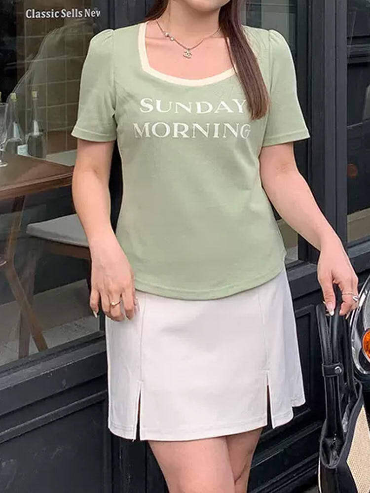 シンプルなのに映える一着 バイカラーフロントロゴカットソー カジュアル 大人かわいい スクエアネック 着回し 人気 大きいサイズ 韓国 CH9235