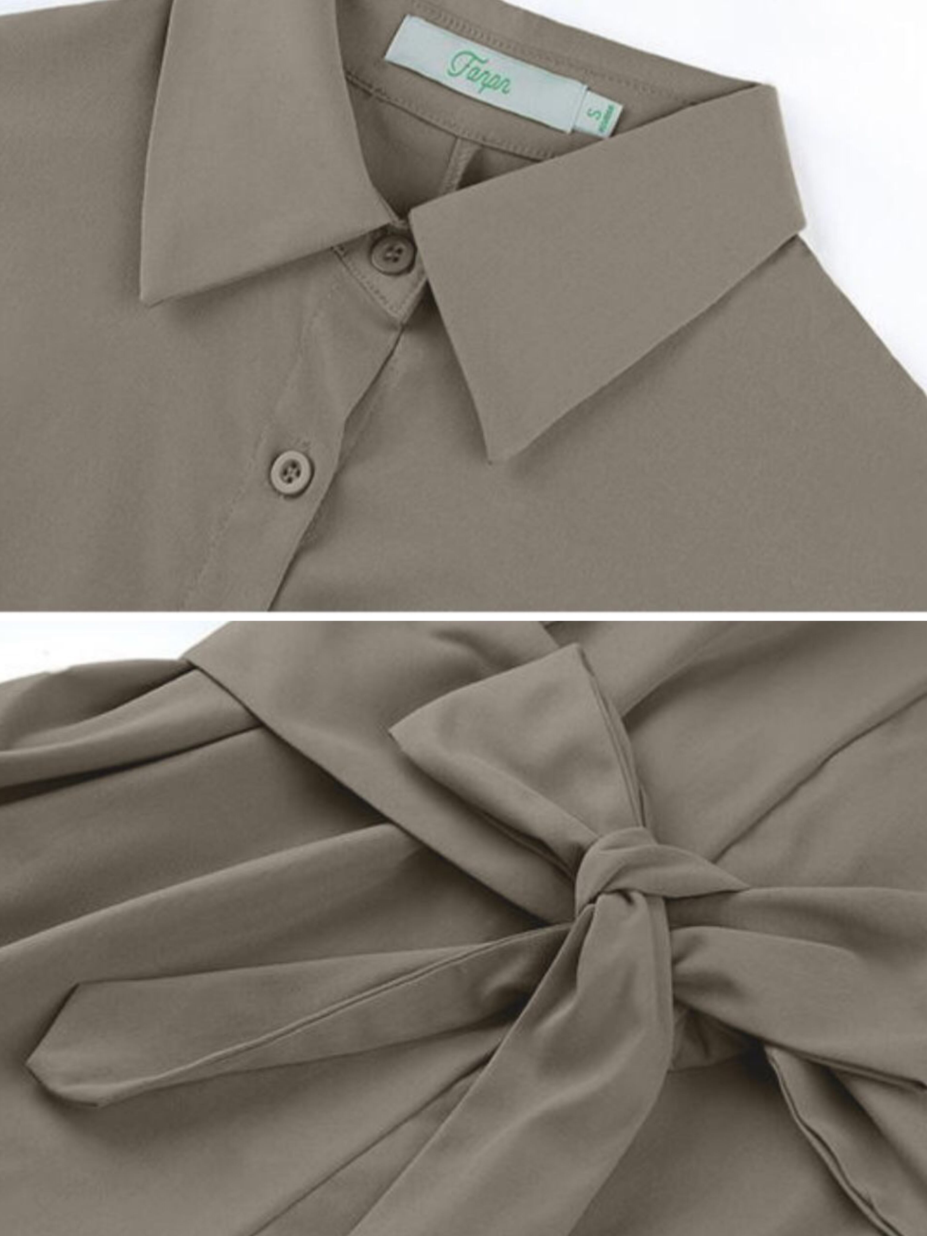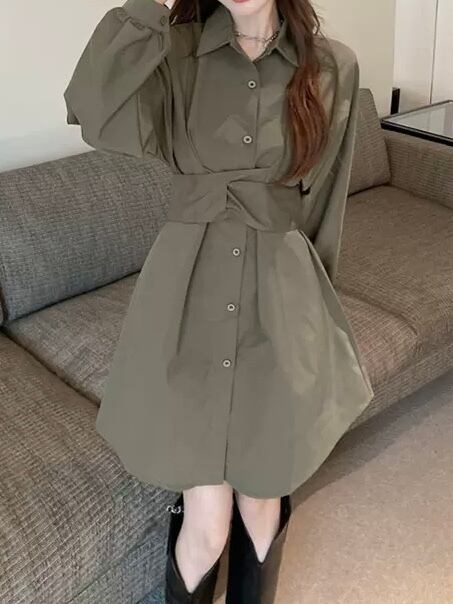 大人のこなれ感満載コーデ ミニシャツワンピース×ショートパンツセットアップ 2点セット 長袖 リボン きれいめ おしゃれ 大人可愛い 大きいサイズ 韓国 CH9271