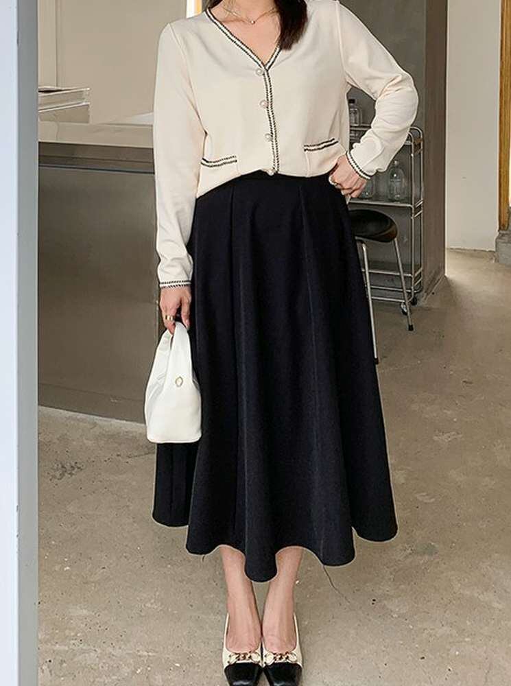 レトロな雰囲気漂う フレアロングスカート シンプル 大人 ガーリー 秋冬 大きいサイズ 韓国 CH9294