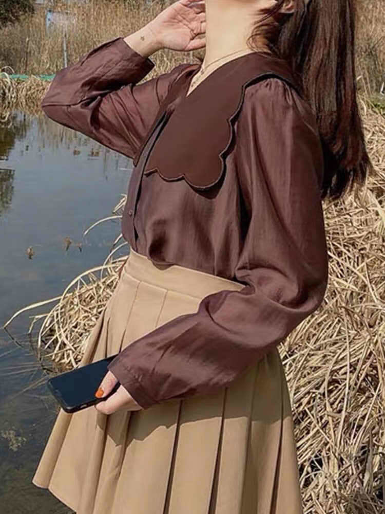 かわいらしいビッグセーラーカラーデザインをワントーンで引き締めた、長袖ブラウスです。