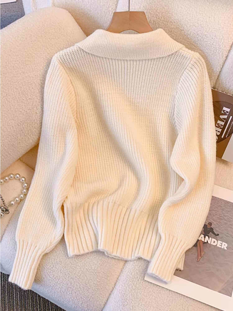 周囲と差のつくおしゃれコーデになれる!ざっくりローゲージの襟付きセーターです。