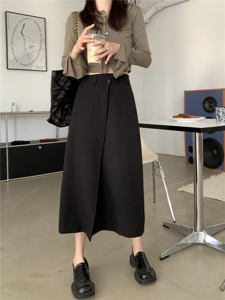 スッキリ見え美ラインAラインスカート ハイウエスト カジュアル ロング丈 体型カバー 韓国 大きいサイズ CH9403