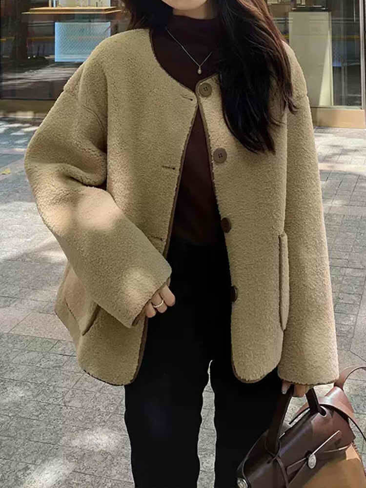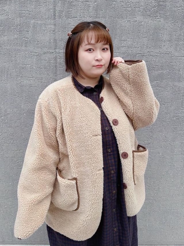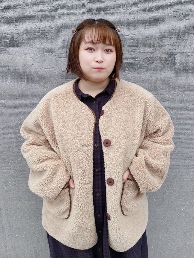 ナチュラルなかわいさと上品さを備えたデザイン♪ノーカラーのファージャケットです。