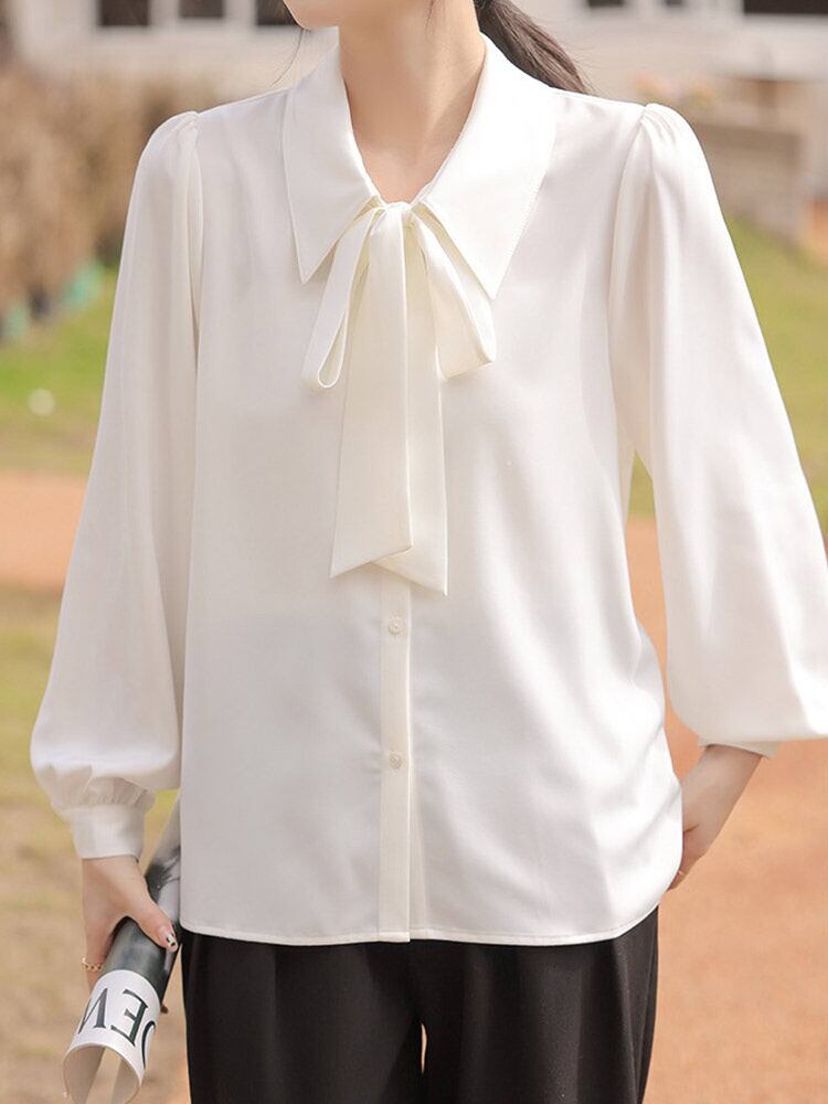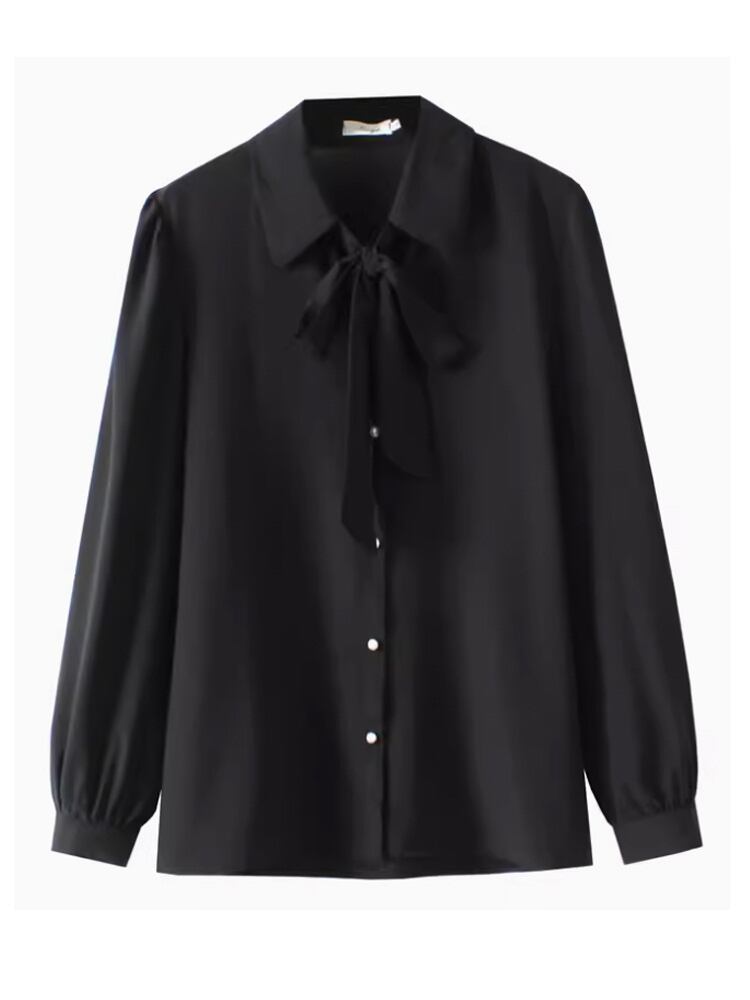 フェミニンなフォーマルアイテム パールボタン付きリボンタイブラウス シンプル 無地 オフィス 制服 お呼ばれ 大きいサイズ 韓国 CH9554