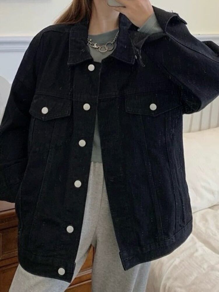 サッと羽織って旬顔スタイルに オーバーサイズデニムジャケット トレンド お洒落 着回し ユニセックス カジュアル きれいめ 大人可愛い 大きいサイズ 韓国 CH9583