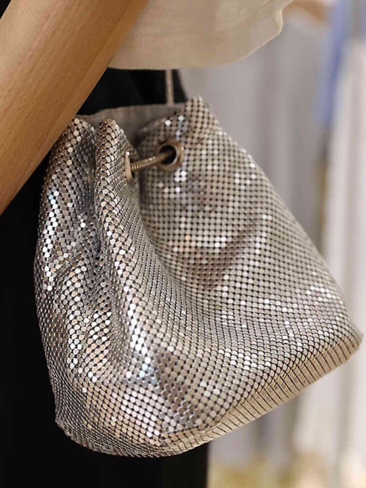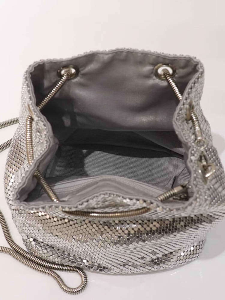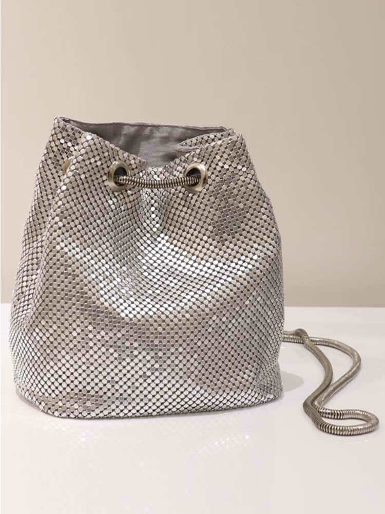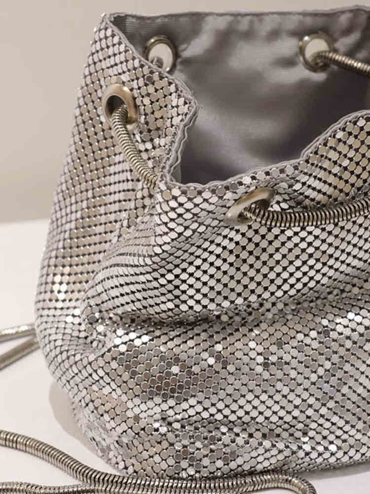 メタリックなトレンドアイテム シルバースパンコール巾着型バッグ 2way 小さめ 人気 プチプラ 大きいサイズ 韓国 CH9601