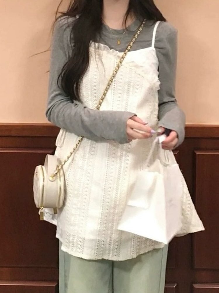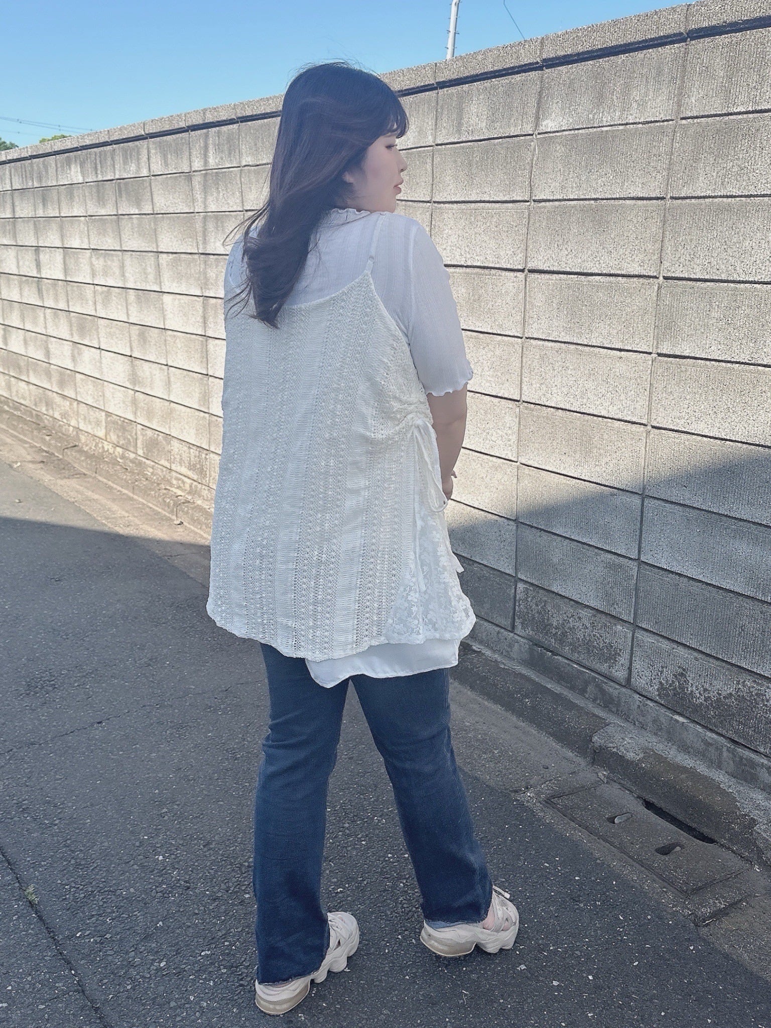 立体感のある洒落見えコーデに レースキャミソールビスチェ レース フリル リボン 大人可愛い お洒落 カジュアル きれいめ 着回し レイヤード おでかけ 大きいサイズ 韓国 CH9596