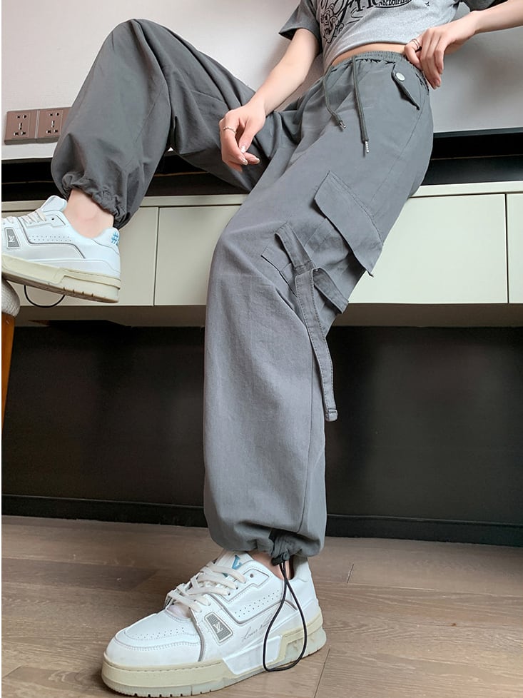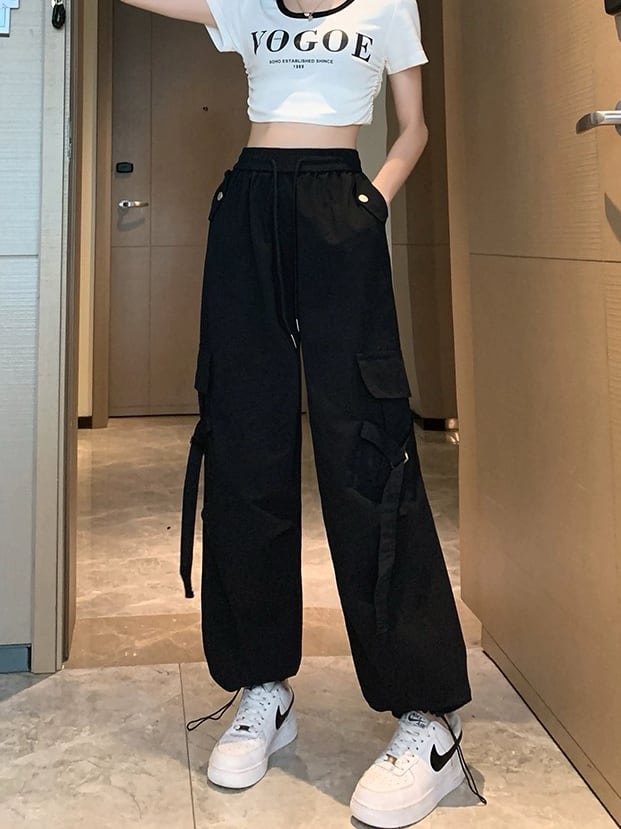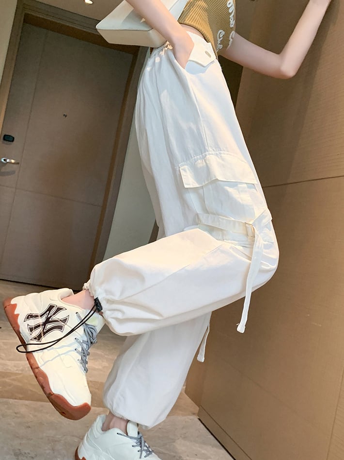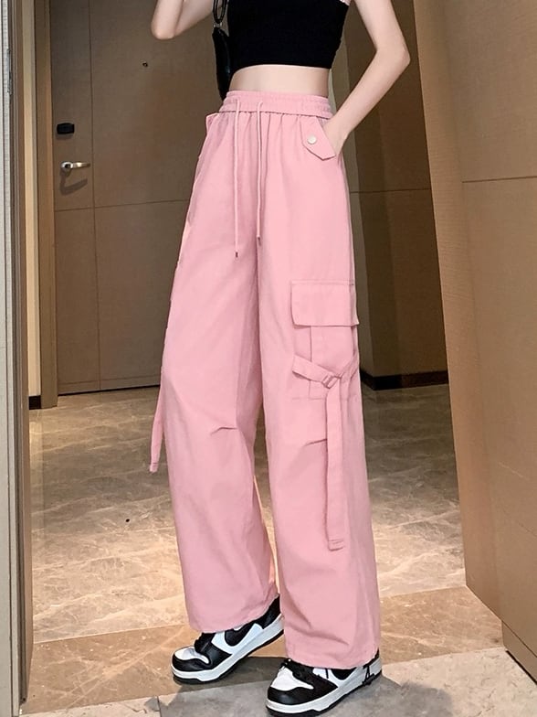 メリハリのある今っぽシルエット サイドベルトカーゴパンツ 人気 トレンド お洒落 ワイド ゆったり 着痩せ 細見え 着回し 大きいサイズ 韓国 CH9611