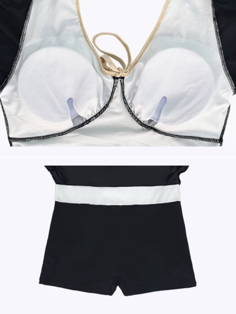 露出が気になる方にもオススメ!シックなカラーリングがおしゃれなオールインワン水着です♡