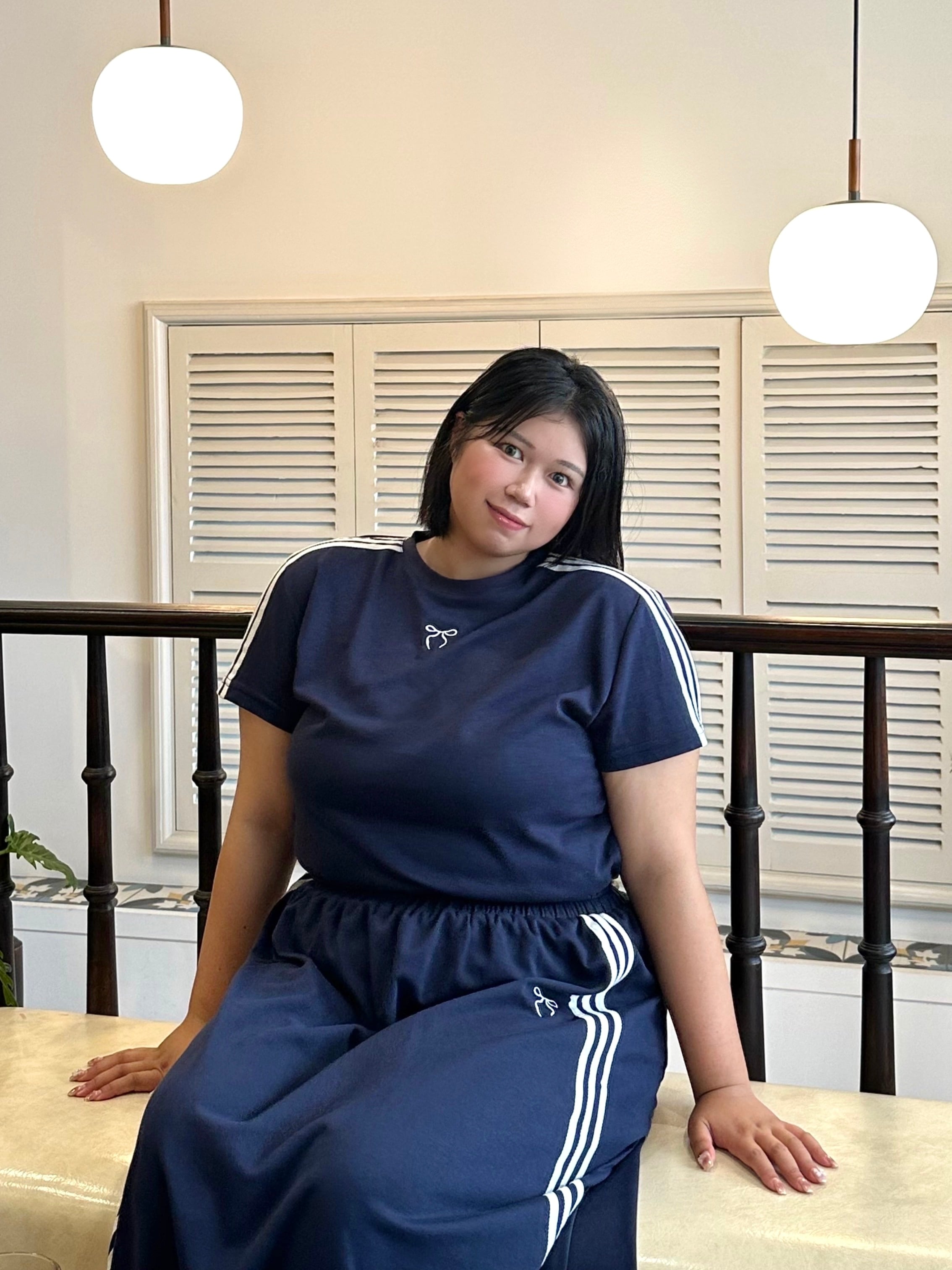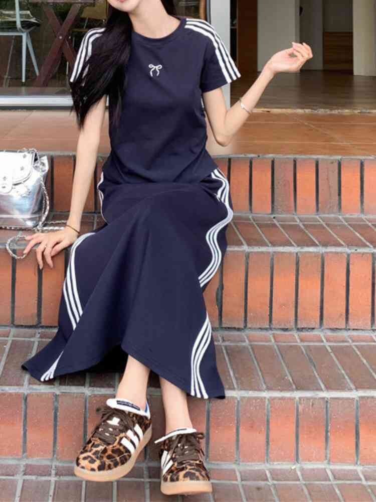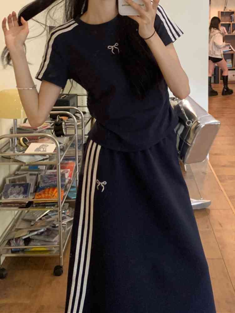 スポーティラインリボンセットアップ トップス×Aラインスカート 上下セット おしゃれ カジュアル シンプル CH7207