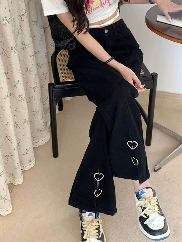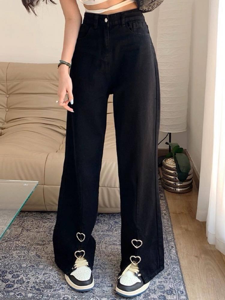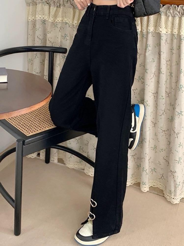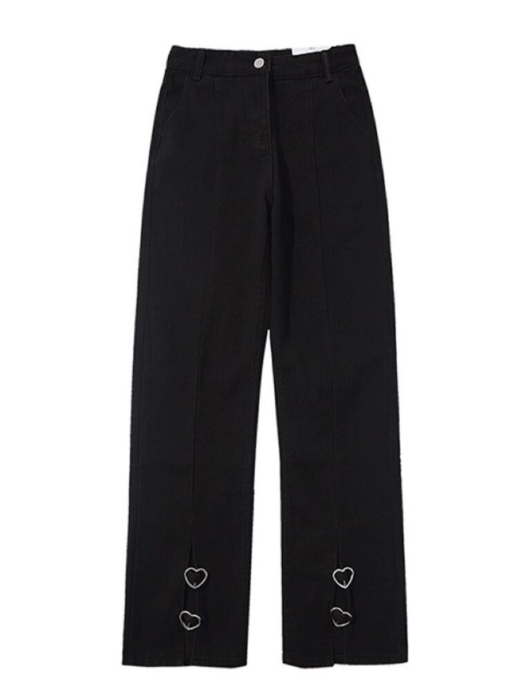足元映えなシャレ見えボトムス ハートバックルスリットパンツ ハート スリット 大人可愛い お洒落 カジュアル ガーリー シンプル 細見え 脚長 大きいサイズ 韓国 CH9671