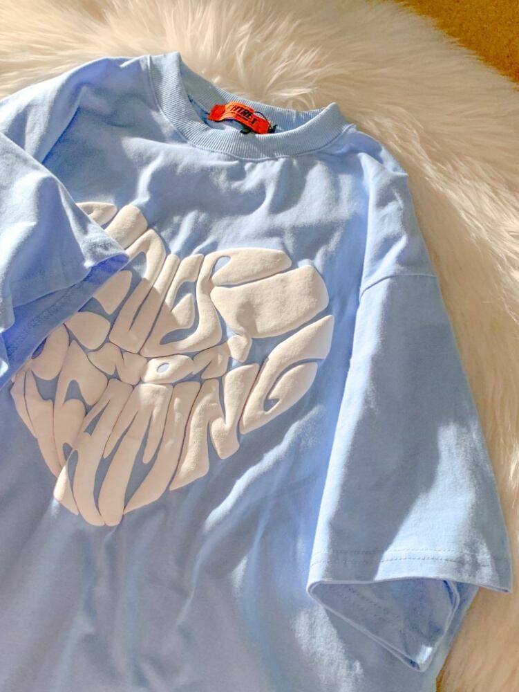 ハートグラフィックカジュアルTシャツ ドロップショルダー 4分袖 可愛い ストリート 半袖 大きいサイズ 韓国 CH9744