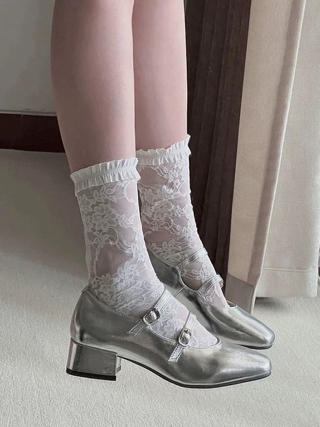 おしゃれ女子マストハブシューズ スクエアトゥダブルストラップパンプス メタリック シルバー トレンド お洒落 かわいい 大人 きれいめ カジュアル 高見え バレエコア 大きいサイズ 韓国 CH9745
