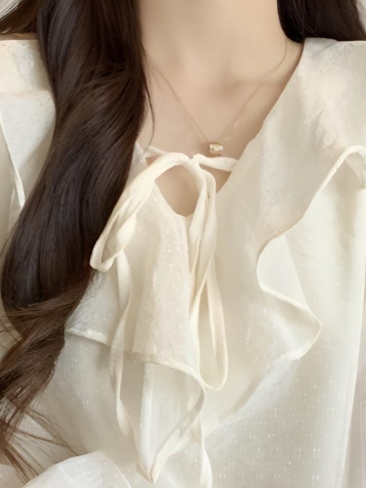 軽やかなシフォン素材を使用したフリルブラウスは、着心地が良く、さまざまなシーズンで活躍します。襟元のリボンディテールと繊細なフリルが女性らしさを引き立て、オフィスやデートシーンにもぴったり。シンプルながらも、ディテールにこだわったデザインが魅力的です。