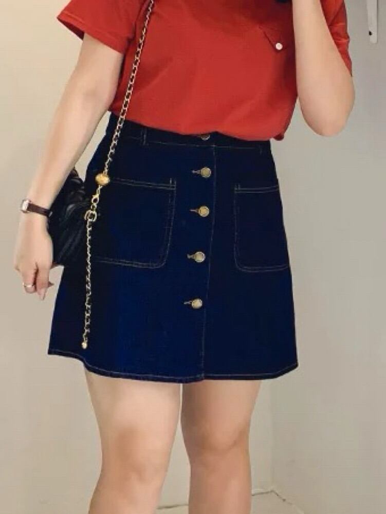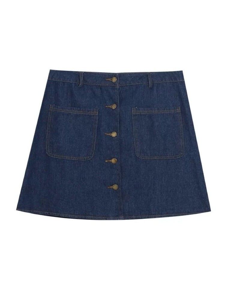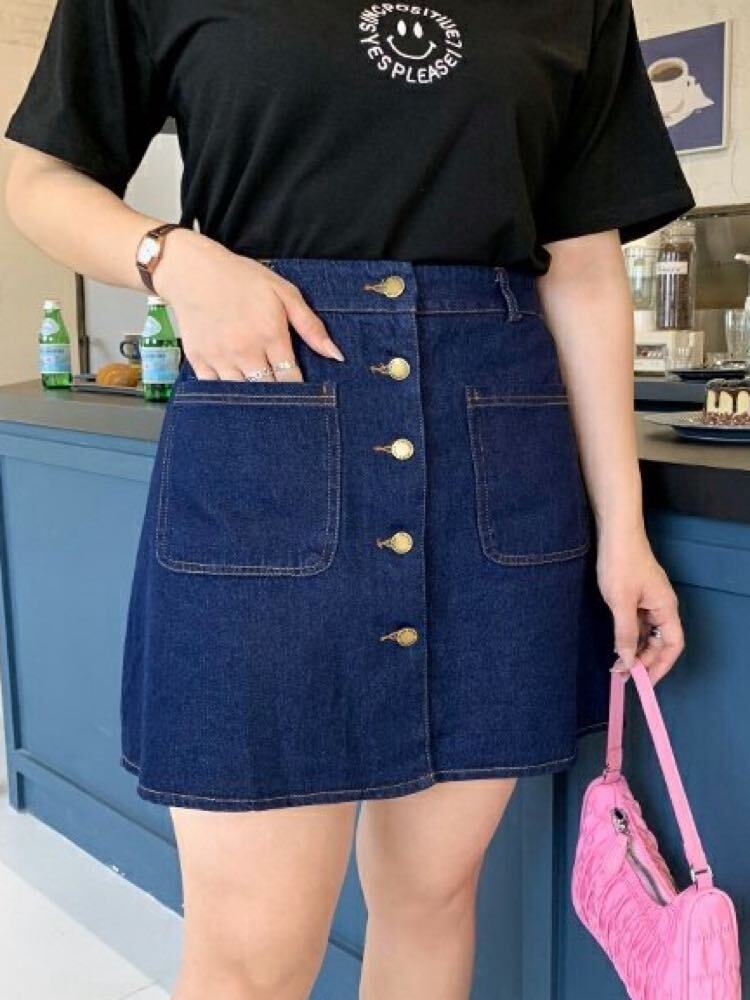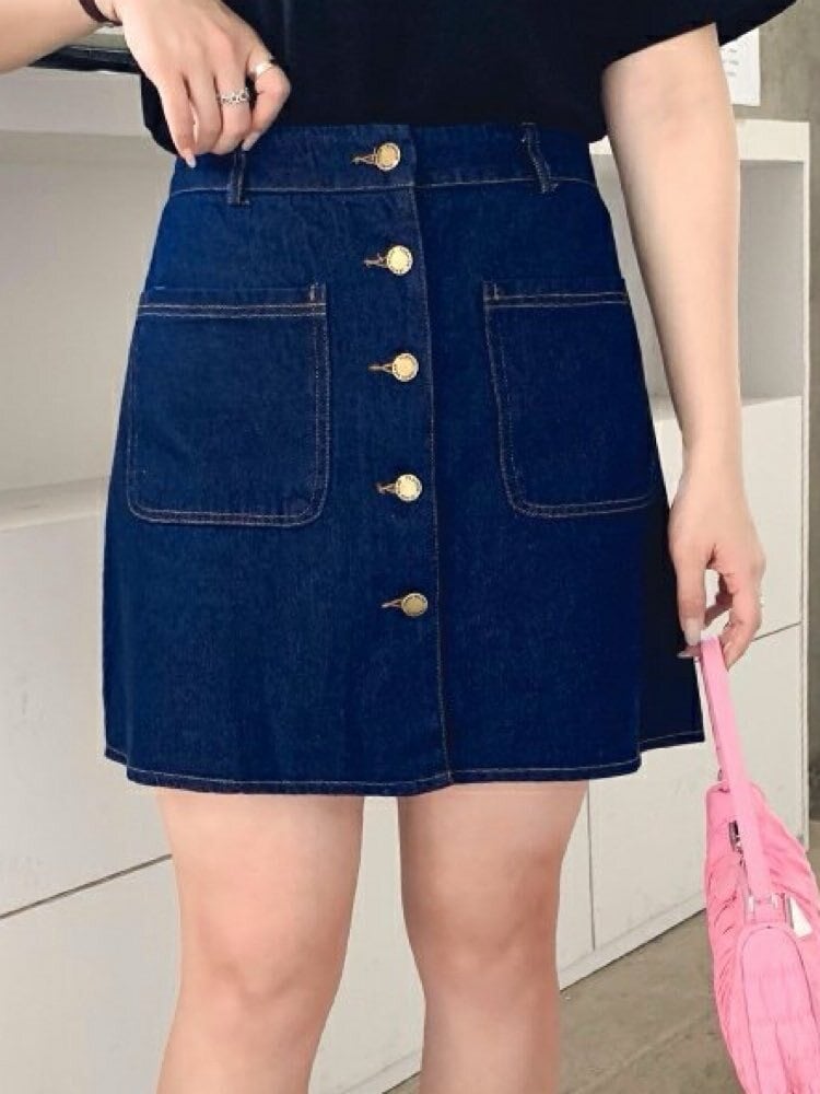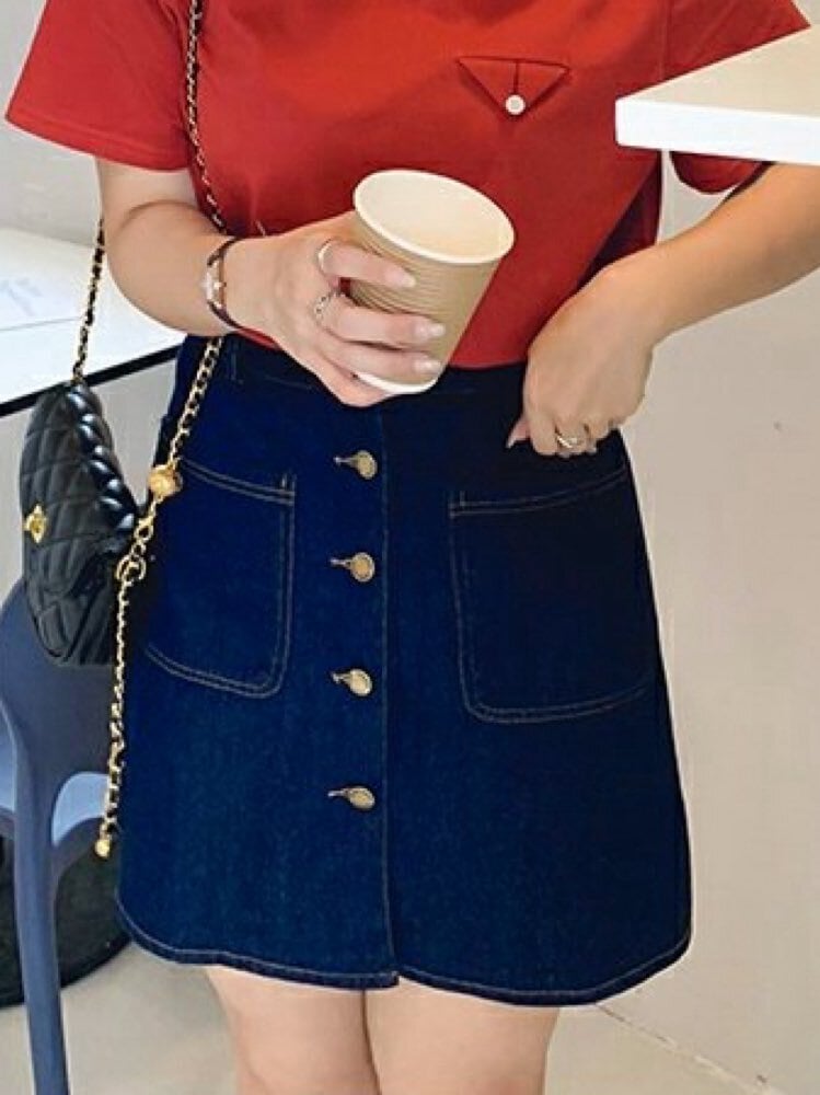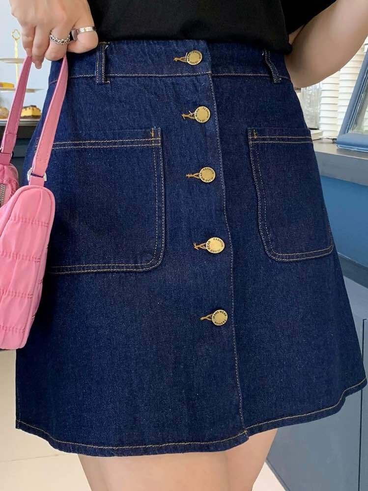 ロングシーズン活躍できる優秀アイテム フロントボタンデニムミニスカート ミニ丈 定番 シンプル ボタン ポケット カジュアル 可愛い おしゃれ 細見え 美脚 大きいサイズ 韓国 CH9908