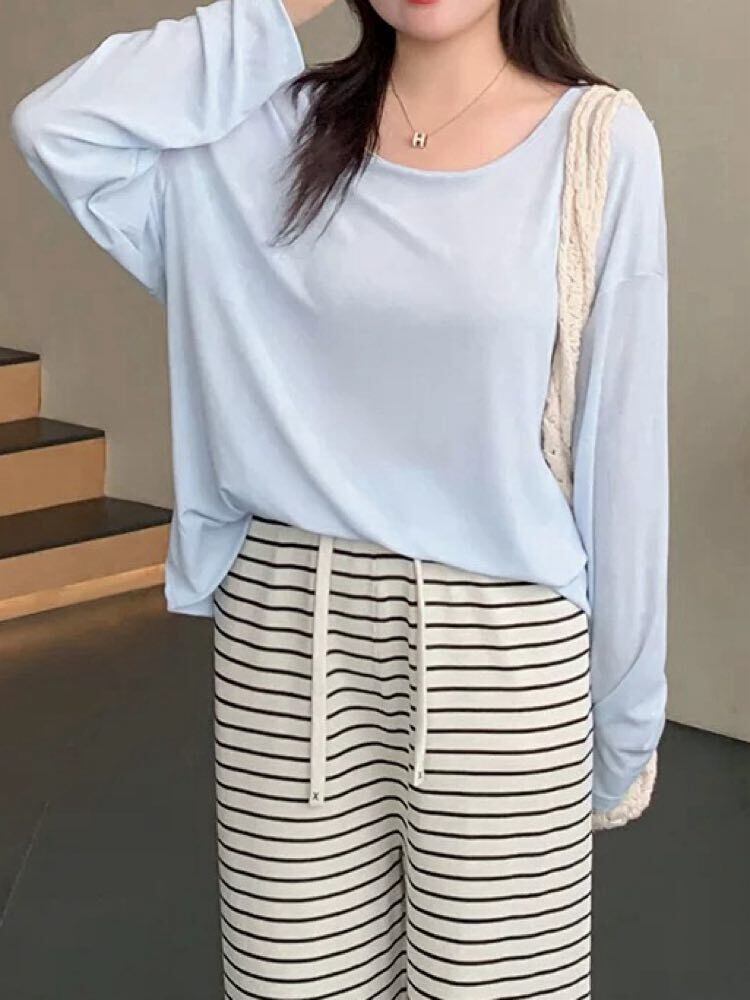 程よい肌見せでレディライクに バッククロスシアープルオーバー 長袖 シアー お洒落 シンプル カジュアル リラクシー 細見え 大きいサイズ 韓国 CH9833