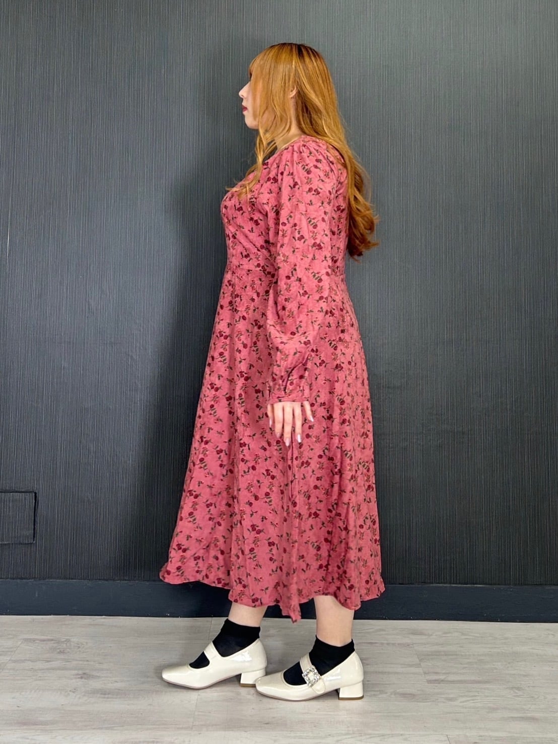 まるでヴィンテージドレスのようなデザインが特徴のこのワンピース。