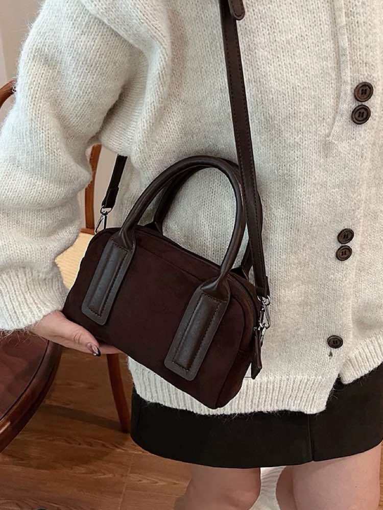季節感グッと上がるアクセントに スエードミニボストンバッグ ミニマル お洒落 大人可愛い カジュアル きれいめ スエード 異素材 お出かけ デイリー 大きいサイズ 韓国 CH10066