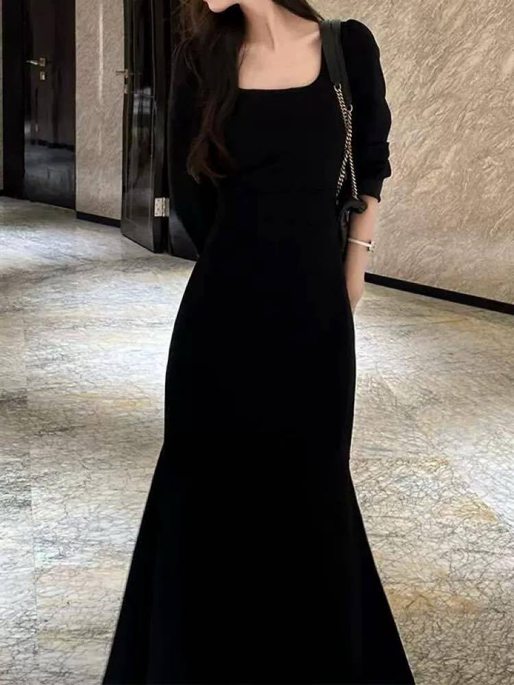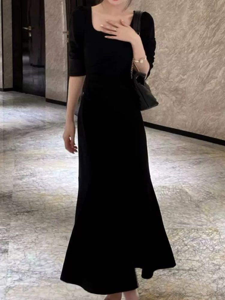 スクエアネックのマーメイドワンピースは、気になるボディラインをカバーしつつ、女度をグッと高めてくれるデザイン!また、デコルテラインを綺麗に見せてくれるので、アクセサリー映えも◎