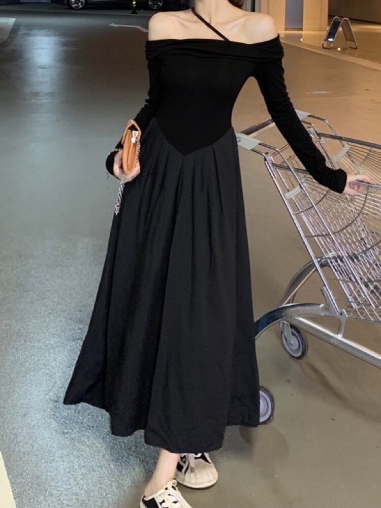 1枚で主役級のスタイル オフショルロングワンピース 上品 Aライン お呼ばれ お出かけ 大きいサイズ 韓国 CH10053