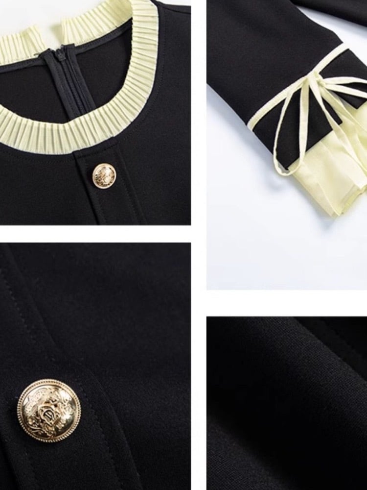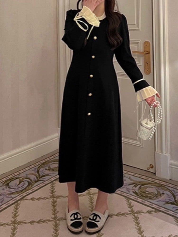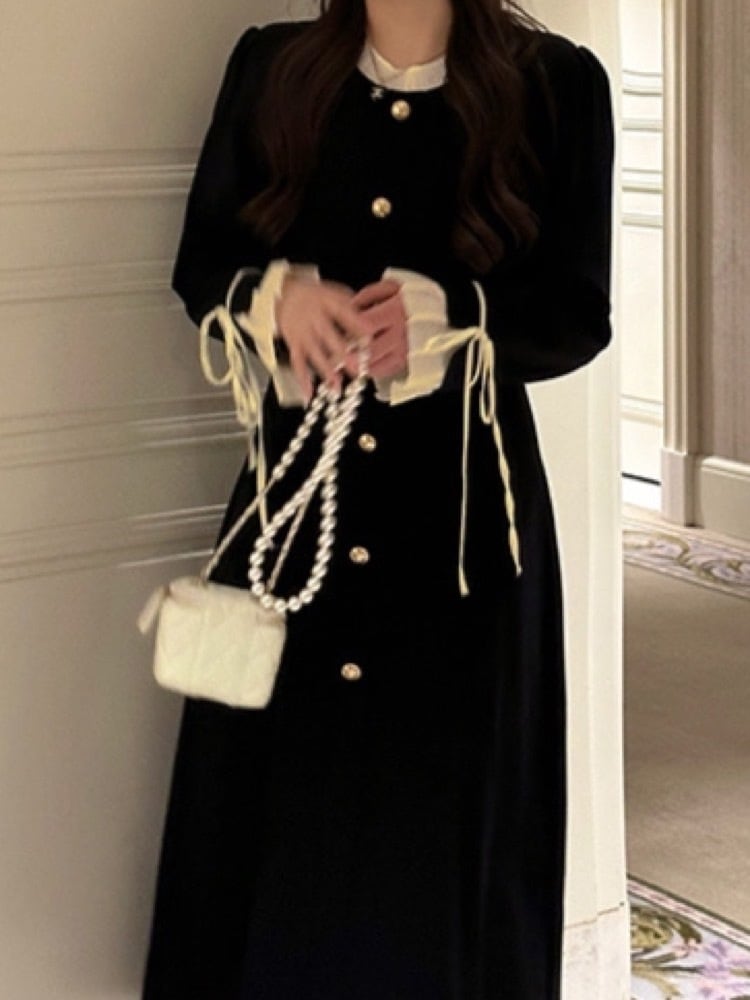 【即納】1点限定 選べる丈であなたのスタイルにフィット!クラシックエレガントボタンワンピース おしゃれ クラシカル シック 着映え 細見え 大きいサイズ 韓国 CH10009
