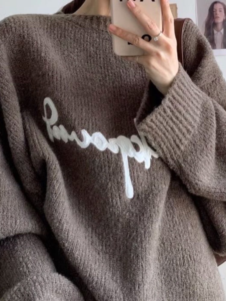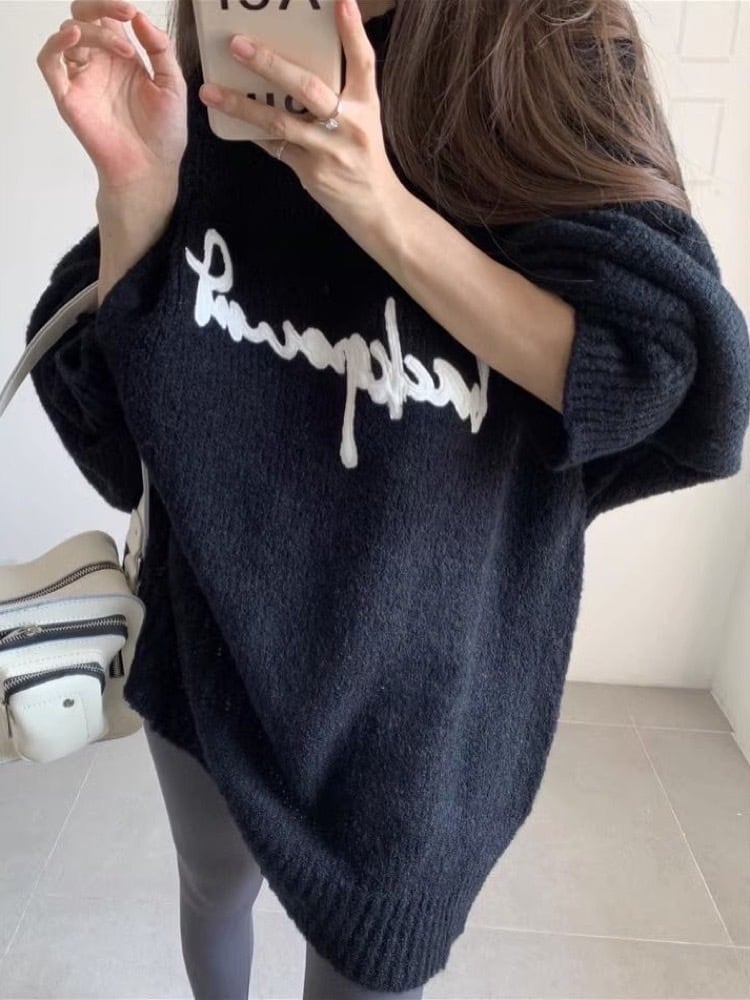 【即納】1点限定 ゆるっと感がたまらない♡トレンドオーバーサイズニット ゆるっとオーバーサイズロゴニット 大人 人気 デイリー使い トレンド 大きいサイズ 韓国 CH10003