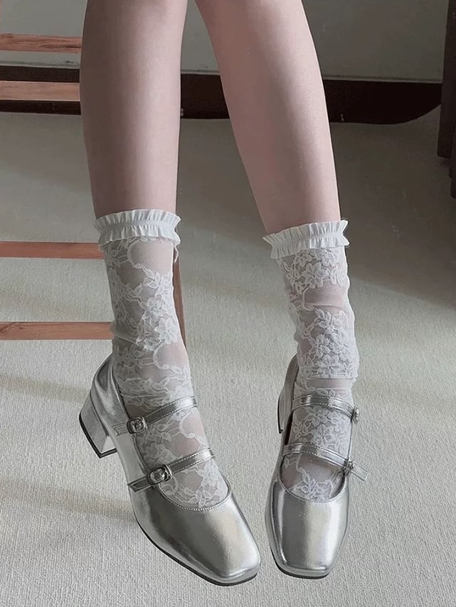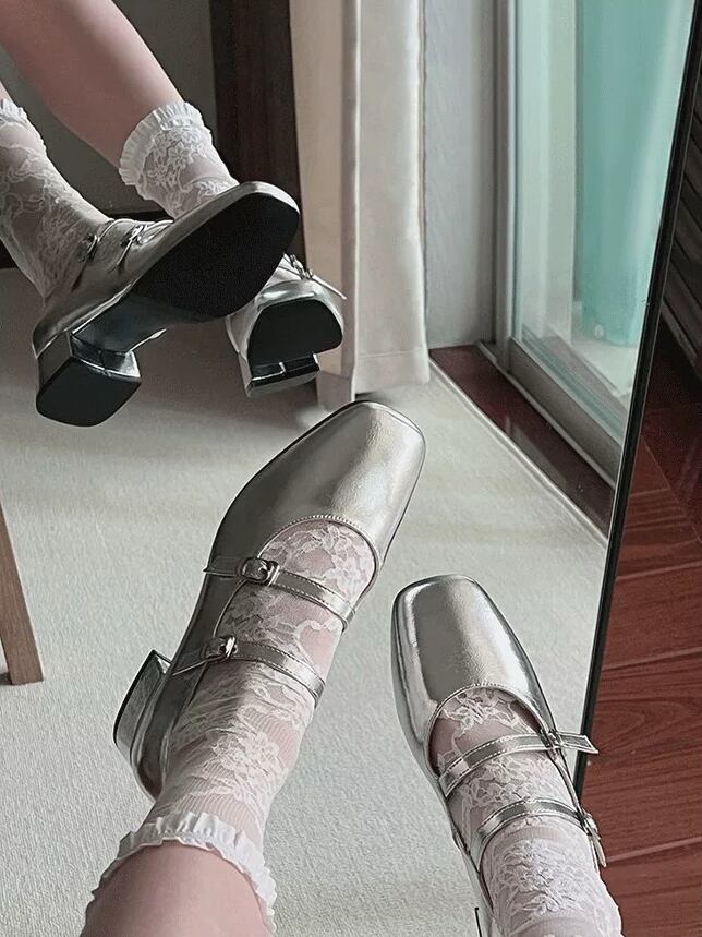【即納】一点限定 24.5cm おしゃれ女子マストハブシューズ スクエアトゥダブルストラップパンプス メタリック シルバー トレンド お洒落 かわいい 大人 きれいめ カジュアル 高見え バレエコア 大きいサイズ 韓国 CH9745