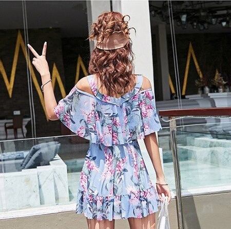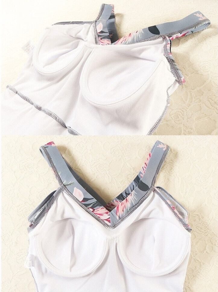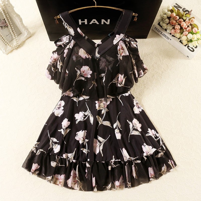 【即納】1点限定 ワンピース水着 花柄 フレア オープンショルダー Vネック Aライン ハイウエスト 大きいサイズ 韓国 CH1069